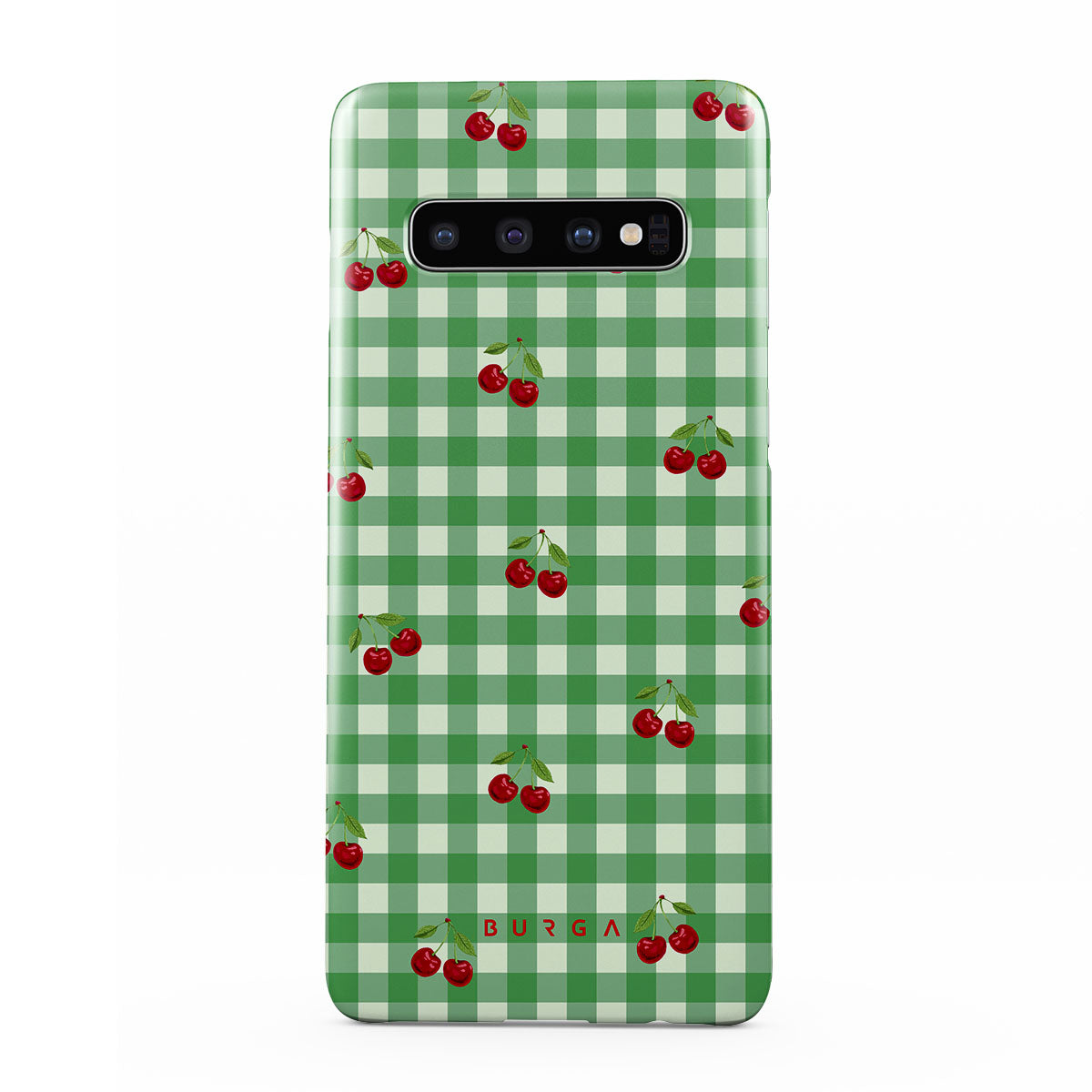 The Little Life Samsung Galaxy S10 Plus phone case design: green checks, simple and true, like a patch of grass under a tree, where you can sit and watch the small world go by, every leaf a chapter in nature’s story.