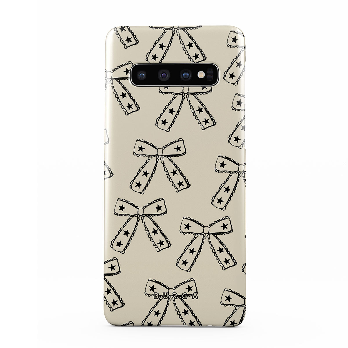 Shine on, Lone Star. Starry bows on a beige background bring a fun twist to your look. This Samsung Galaxy S10 Plus phone case design is ideal for those who march to the beat of their own drum and make their own fashion rules.