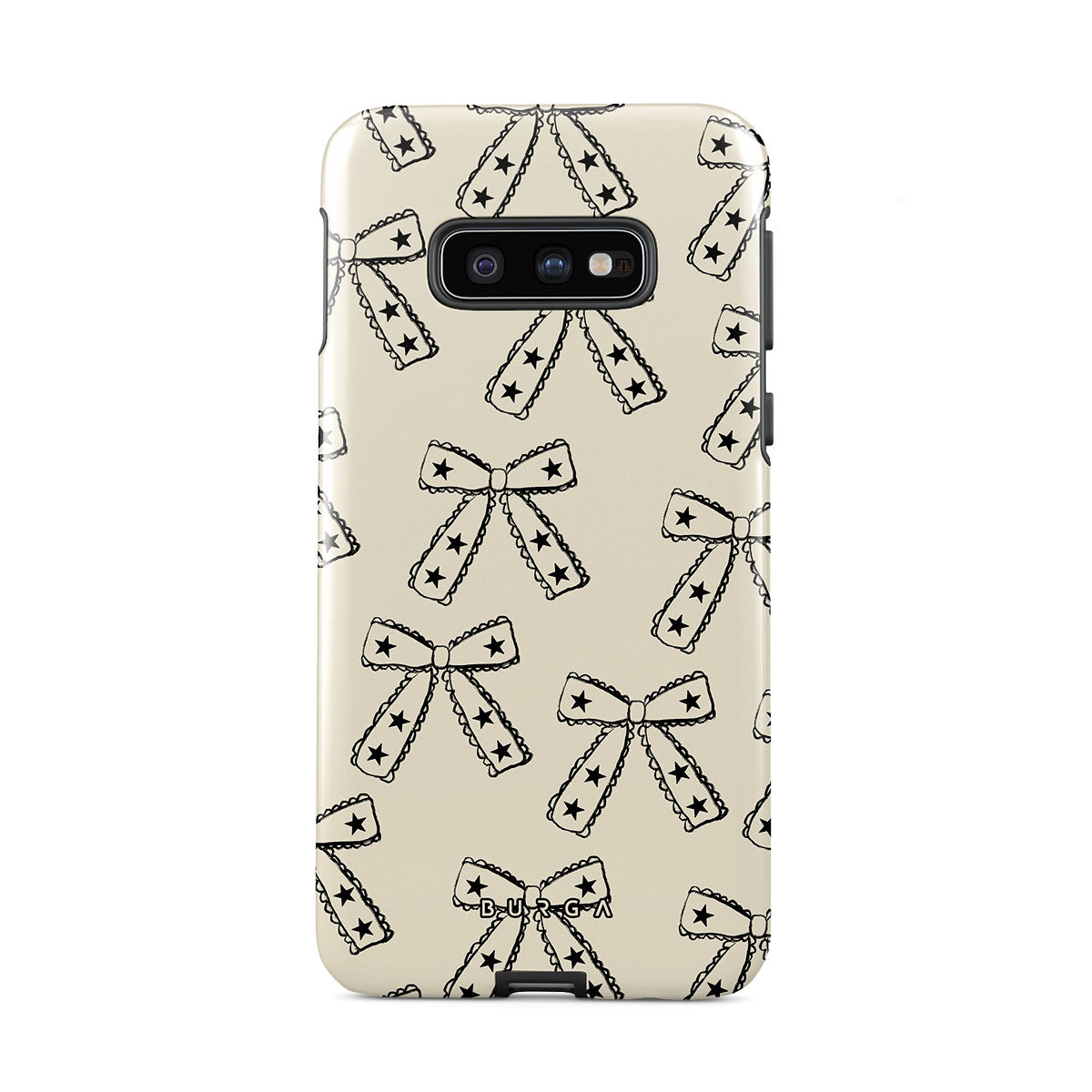 Shine on, Lone Star. Starry bows on a beige background bring a fun twist to your look. This Samsung Galaxy S10E phone case design is ideal for those who march to the beat of their own drum and make their own fashion rules.