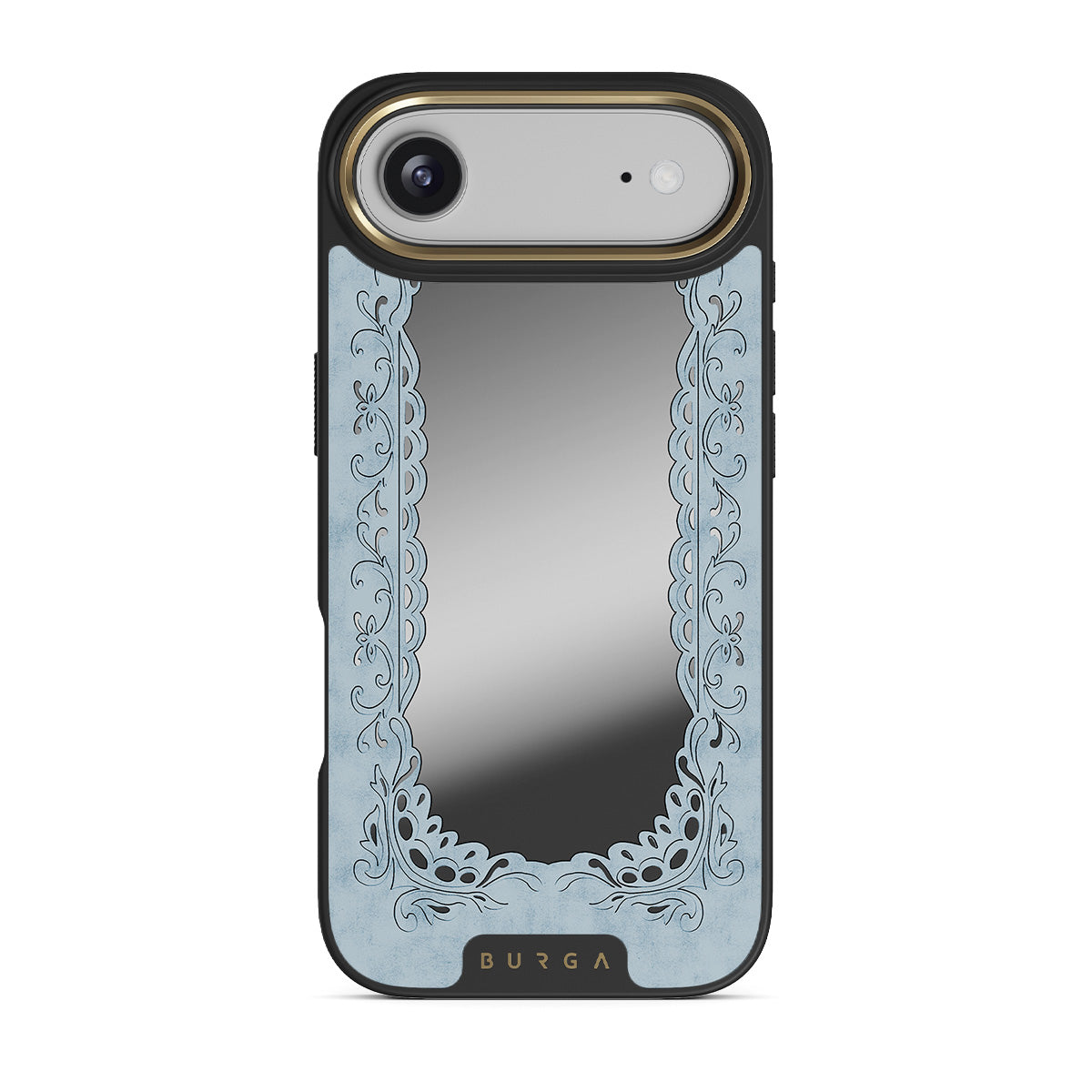Peer into the Looking Glass iPhone Air phone case design, and something peers back. A delicate blue frame, a mirror surface, and the quiet unease that maybe, just maybe, you're not the only one looking.