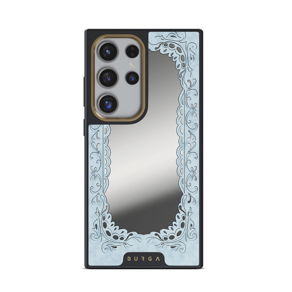 Peer into the Looking Glass Samsung Galaxy S24 Ultra phone case design, and something peers back. A delicate blue frame, a mirror surface, and the quiet unease that maybe, just maybe, you're not the only one looking.