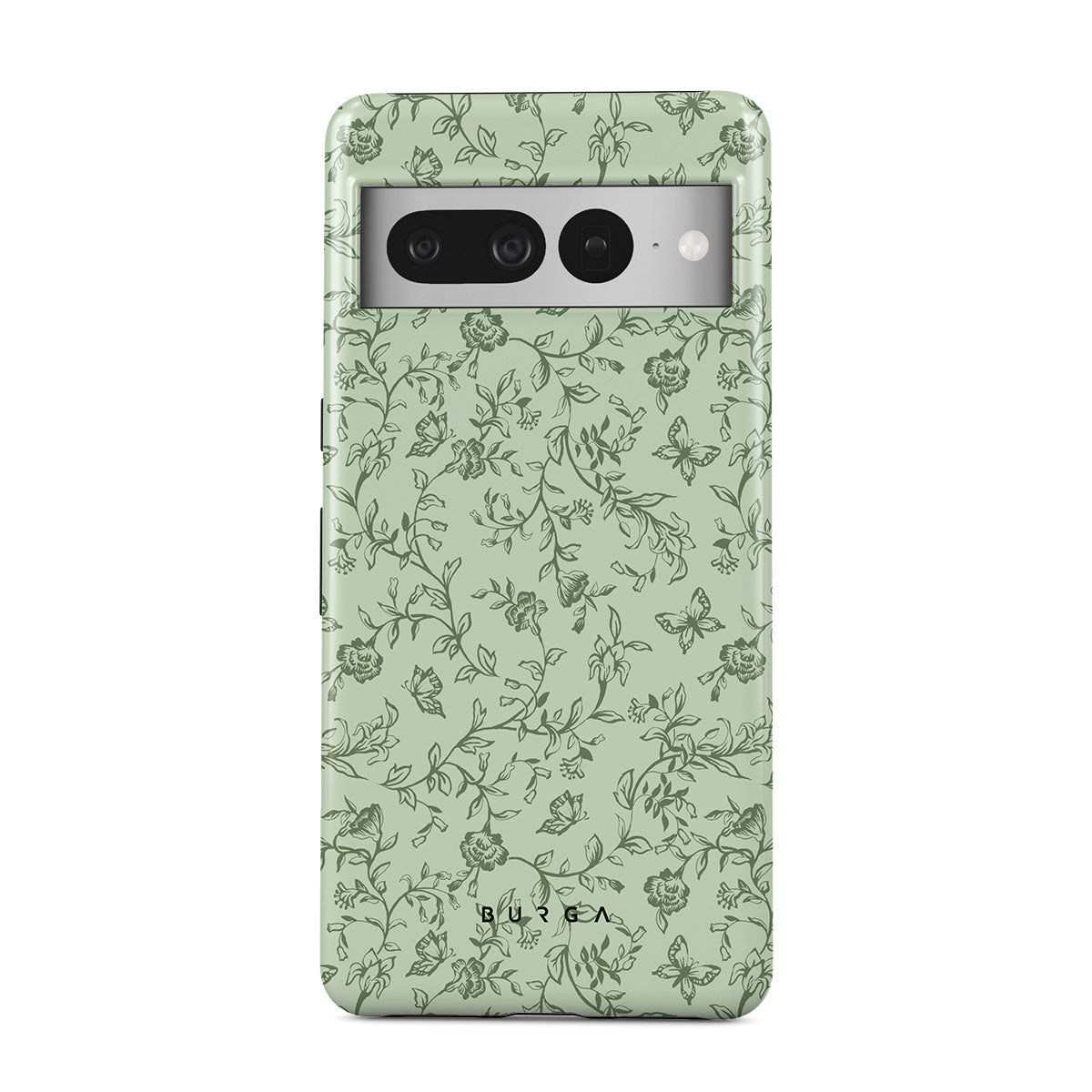 Soft green butterflies, delicate flowers, the kind of dream you wake up from but can’t quite shake. The Lost in Thought Google Pixel 7 Pro phone case design lingers like a half-remembered story, floating just out of reach. Was it real? Or just another trick of Wonderland?