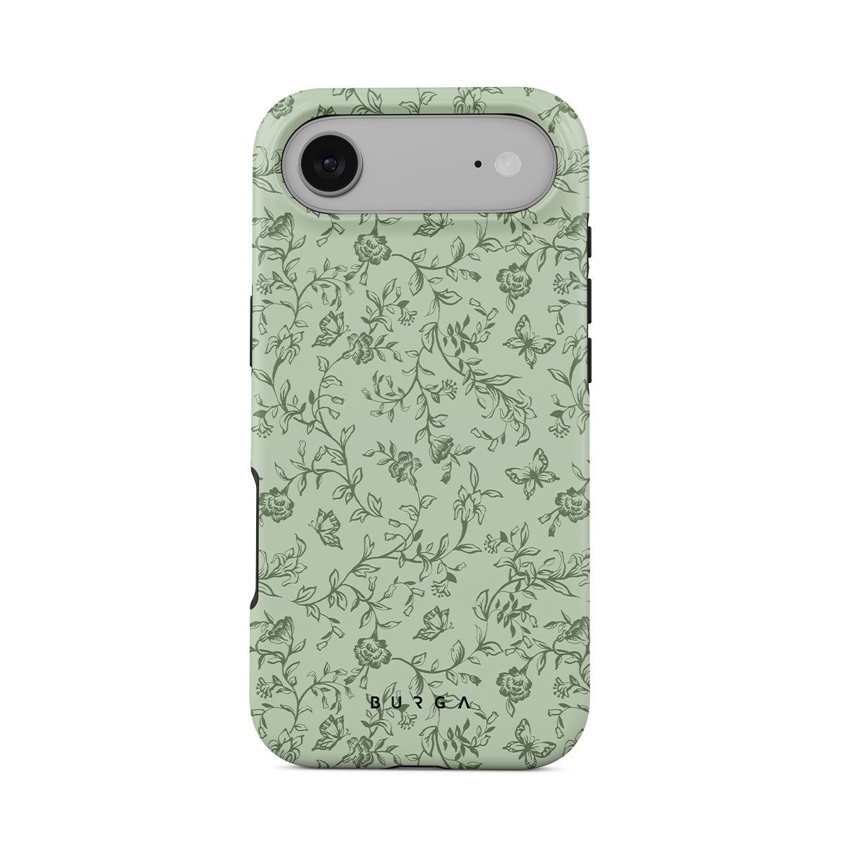 Soft green butterflies, delicate flowers, the kind of dream you wake up from but can’t quite shake. The Lost in Thought iPhone Air phone case design lingers like a half-remembered story, floating just out of reach. Was it real? Or just another trick of Wonderland?