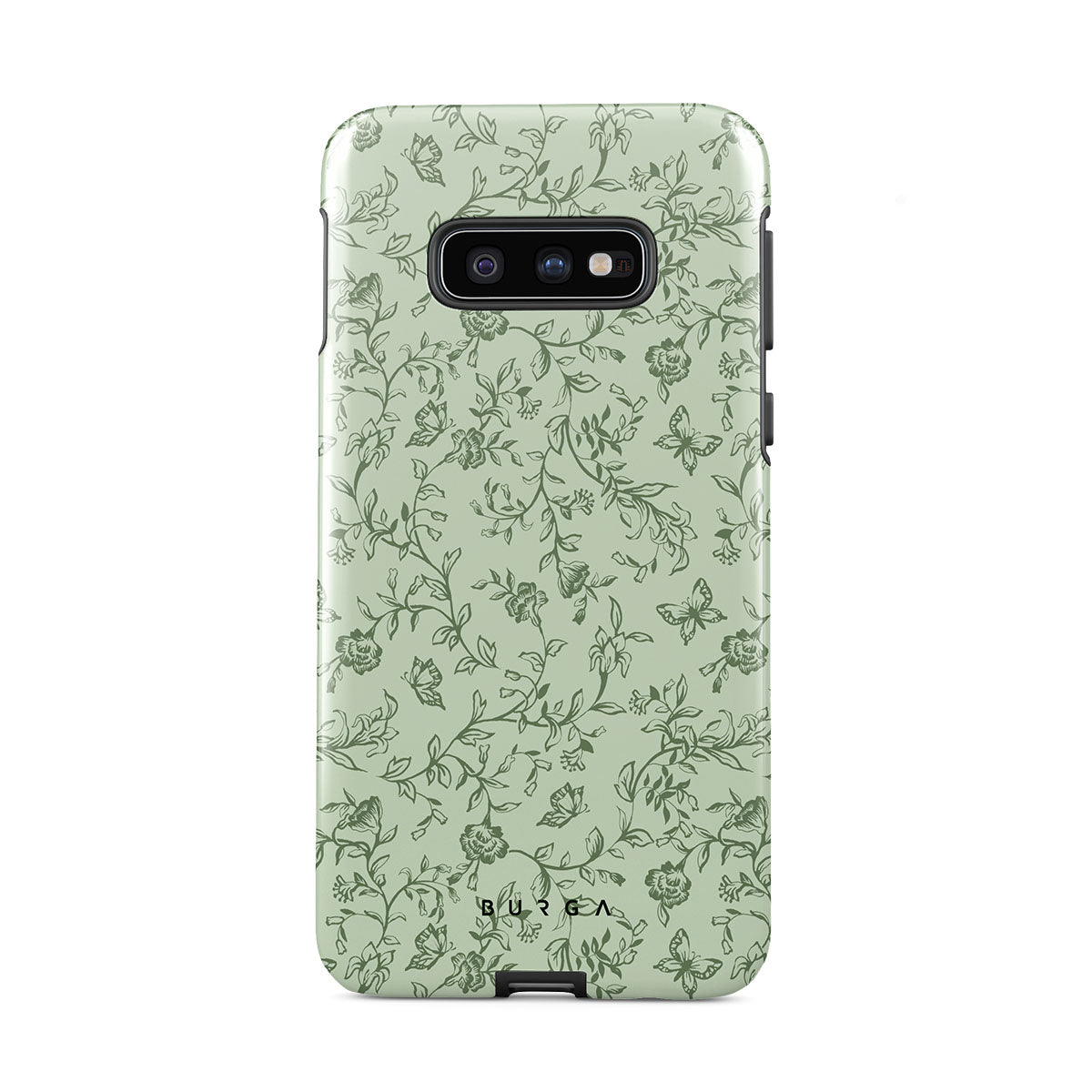 Soft green butterflies, delicate flowers, the kind of dream you wake up from but can’t quite shake. The Lost in Thought Samsung Galaxy S10E phone case design lingers like a half-remembered story, floating just out of reach. Was it real? Or just another trick of Wonderland?