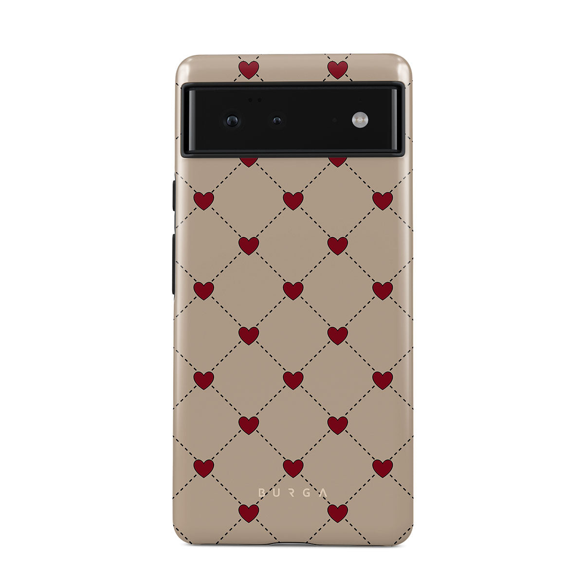 Secrets of the heart whispered between elegant beige diamonds. Every moment, a red heart shimmers—a hidden message, a silent wish, a love letter to the beholder. Discover our Love Letter Google Pixel 6 Pro Case phone case design.
