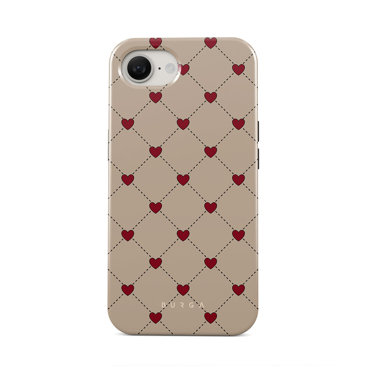 Secrets of the heart whispered between elegant beige diamonds. Every moment, a red heart shimmers—a hidden message, a silent wish, a love letter to the beholder. Discover our Love Letter iPhone 16e Case phone case design.