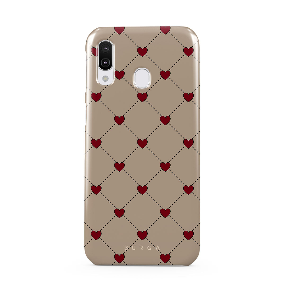 Secrets of the heart whispered between elegant beige diamonds. Every moment, a red heart shimmers—a hidden message, a silent wish, a love letter to the beholder. Discover our Love Letter Samsung Galaxy A40 Case phone case design.