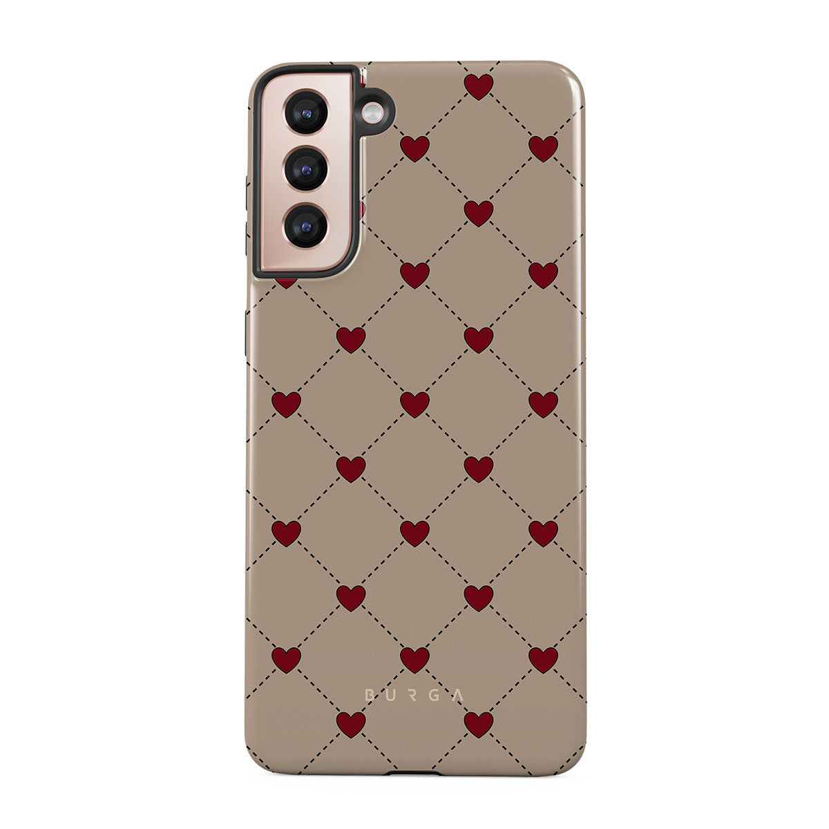 Secrets of the heart whispered between elegant beige diamonds. Every moment, a red heart shimmers—a hidden message, a silent wish, a love letter to the beholder. Discover our Love Letter Samsung Galaxy S21 Plus Case phone case design.