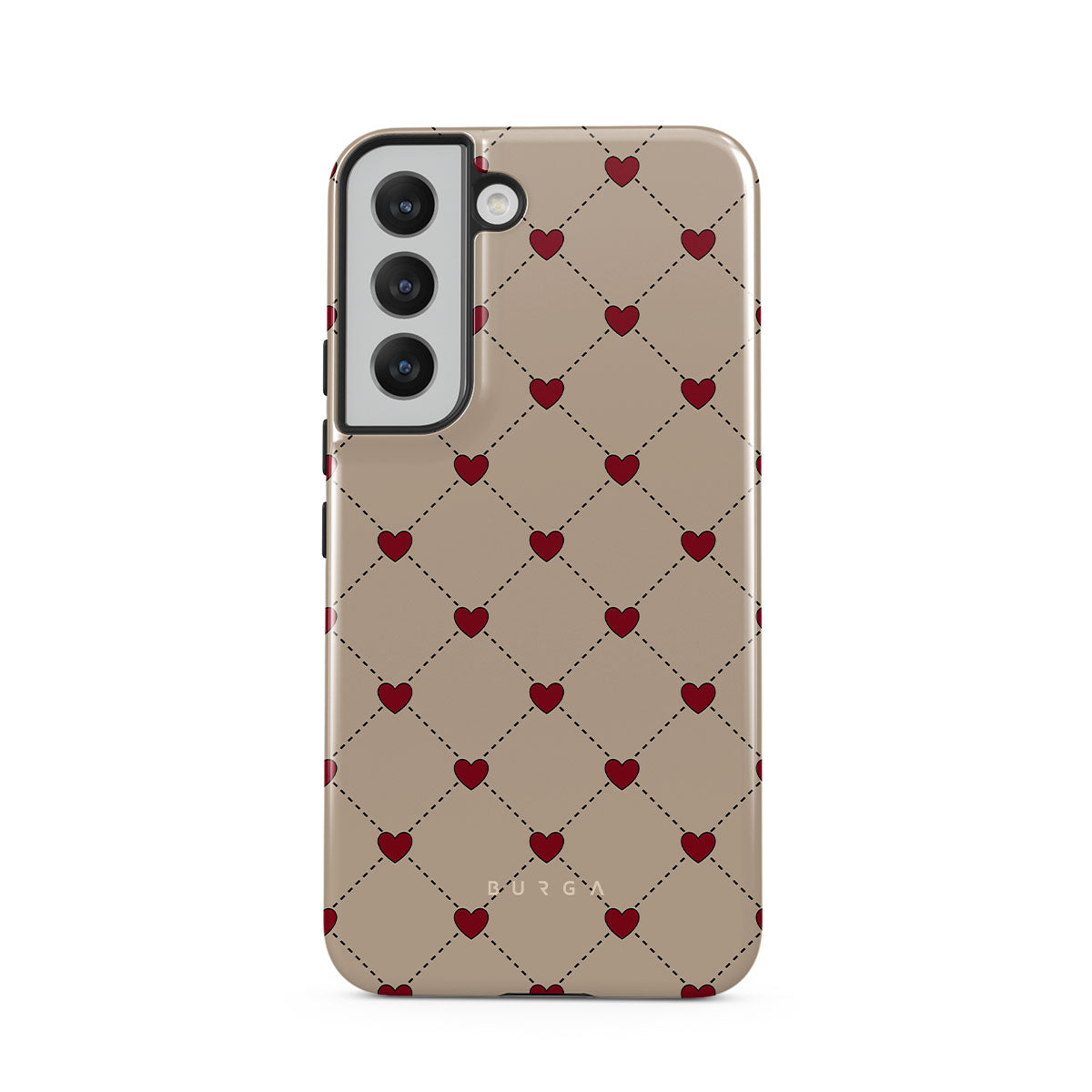 Secrets of the heart whispered between elegant beige diamonds. Every moment, a red heart shimmers—a hidden message, a silent wish, a love letter to the beholder. Discover our Love Letter Samsung Galaxy S22 Plus Case phone case design.