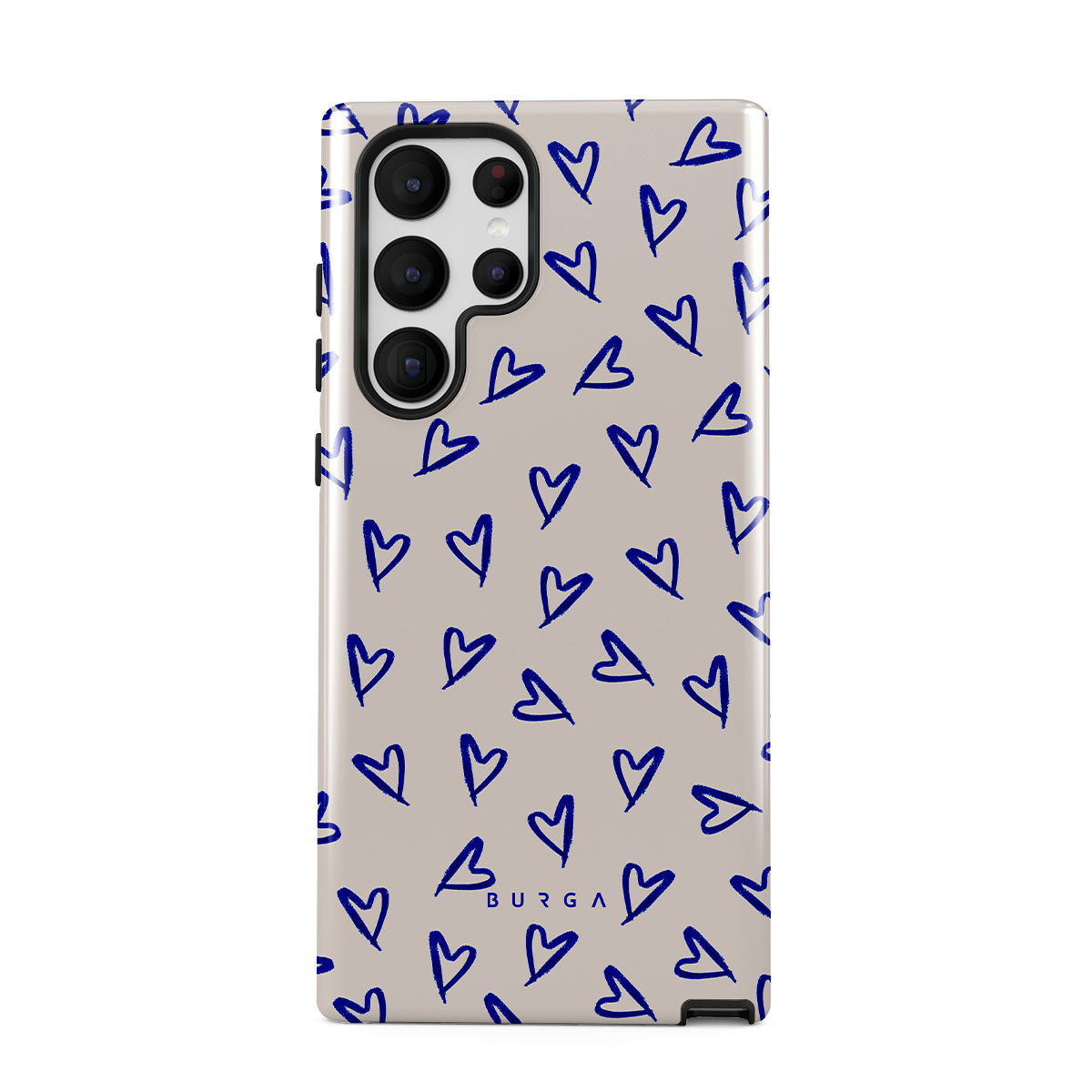 Let your Samsung Galaxy S22 Ultra phone case be the declaration of passion it deserves with the charming Love Me Right design. The soft powder pink background and playful blue hearts create a whimsical and endearing look, making this case the perfect way to show off your loving yet cheeky side.