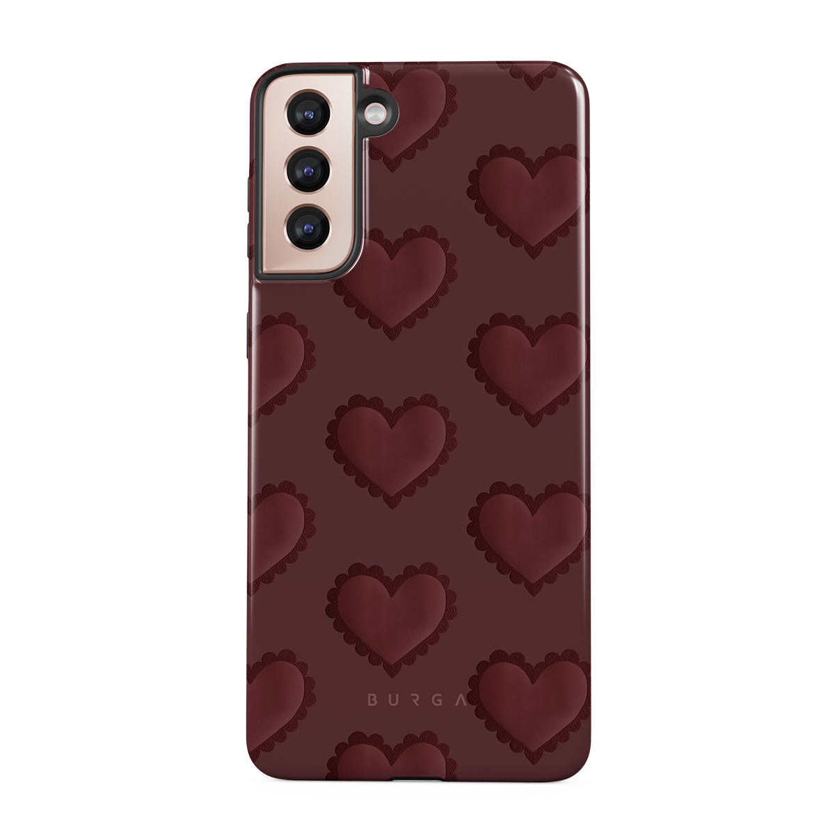 This Samsung Galaxy S21 Plus phone case design is a bold declaration for those addicted to the rush of love. Deep red hearts stitched like scars of passion, Loveholic wears its emotions on its sleeve. It’s messy, intense, and intoxicating—a celebration of those who live for the thrill of surrendering completely to what sets their soul on fire.