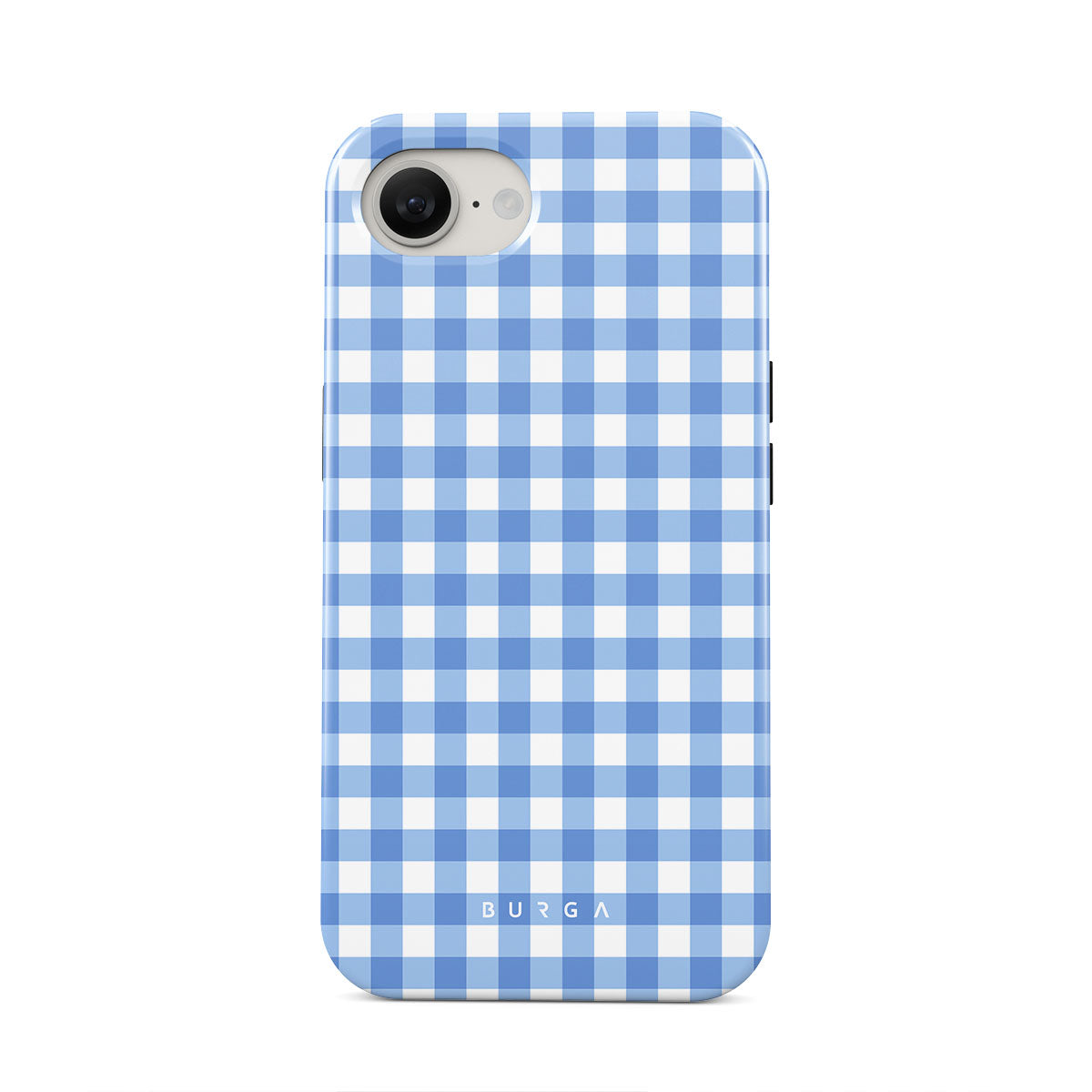 Crisp blue checks are your invitation to lay on the grass, look up at the sky, and find shapes in the clouds—simple joys that make any day lovely. That’s our Lovely Day iPhone 16e phone case design.
