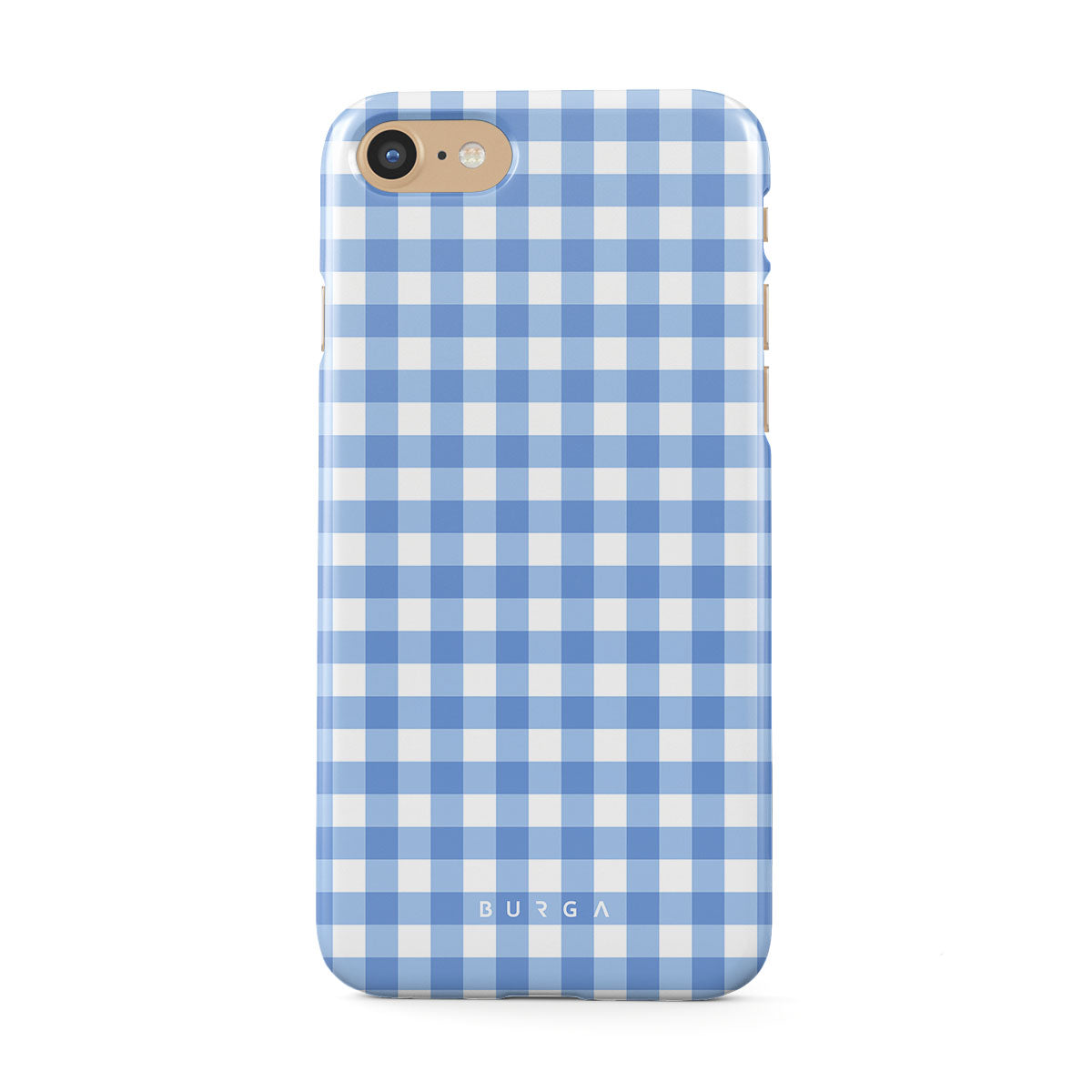 Crisp blue checks are your invitation to lay on the grass, look up at the sky, and find shapes in the clouds—simple joys that make any day lovely. That’s our Lovely Day iPhone SE (2022) phone case design.