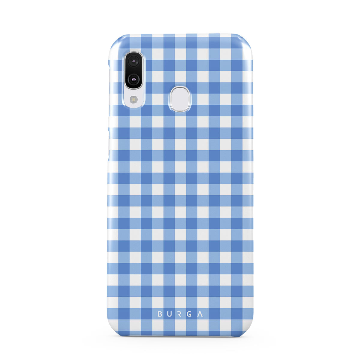 Crisp blue checks are your invitation to lay on the grass, look up at the sky, and find shapes in the clouds—simple joys that make any day lovely. That’s our Lovely Day Samsung Galaxy A40 phone case design.