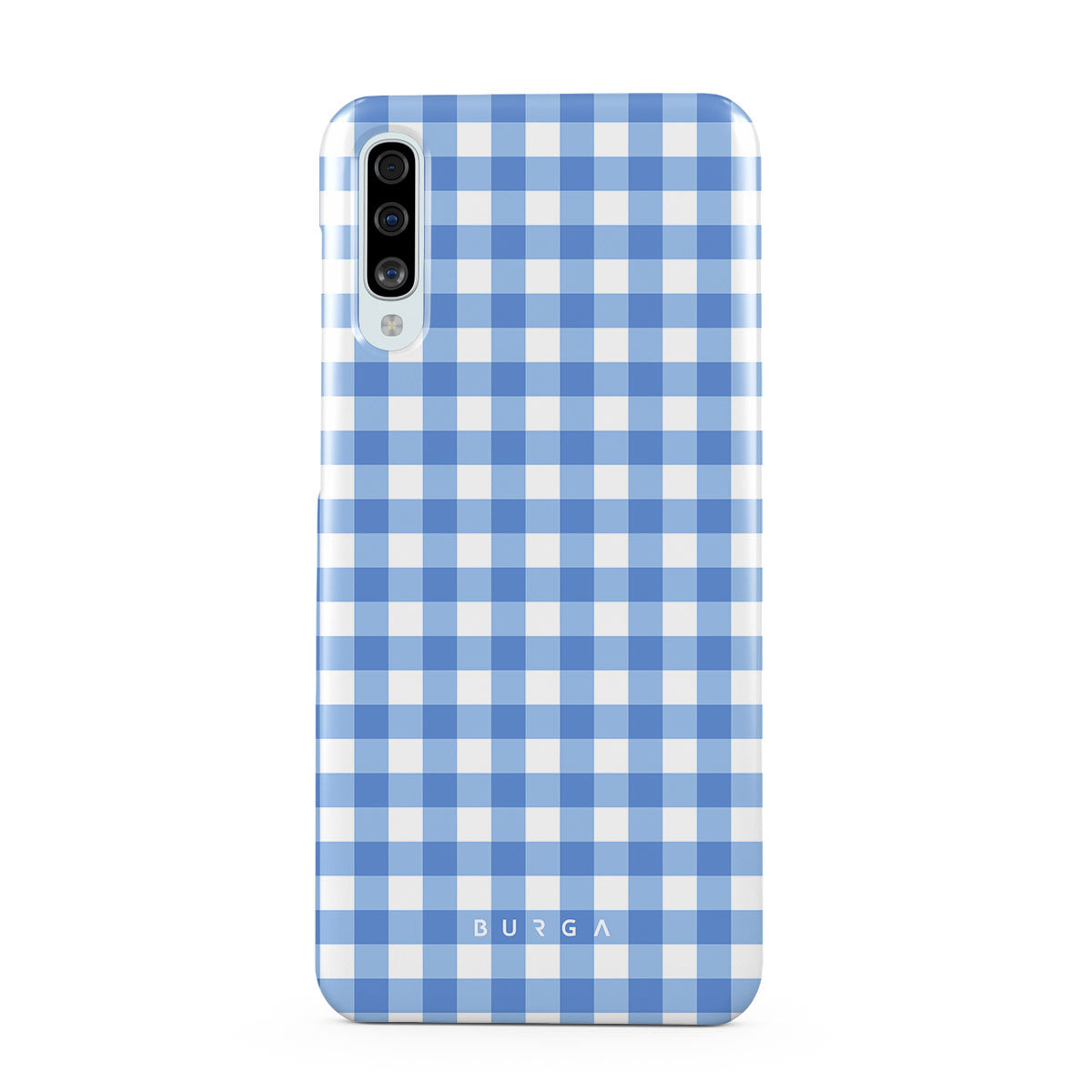 Crisp blue checks are your invitation to lay on the grass, look up at the sky, and find shapes in the clouds—simple joys that make any day lovely. That’s our Lovely Day Samsung Galaxy A50 phone case design.