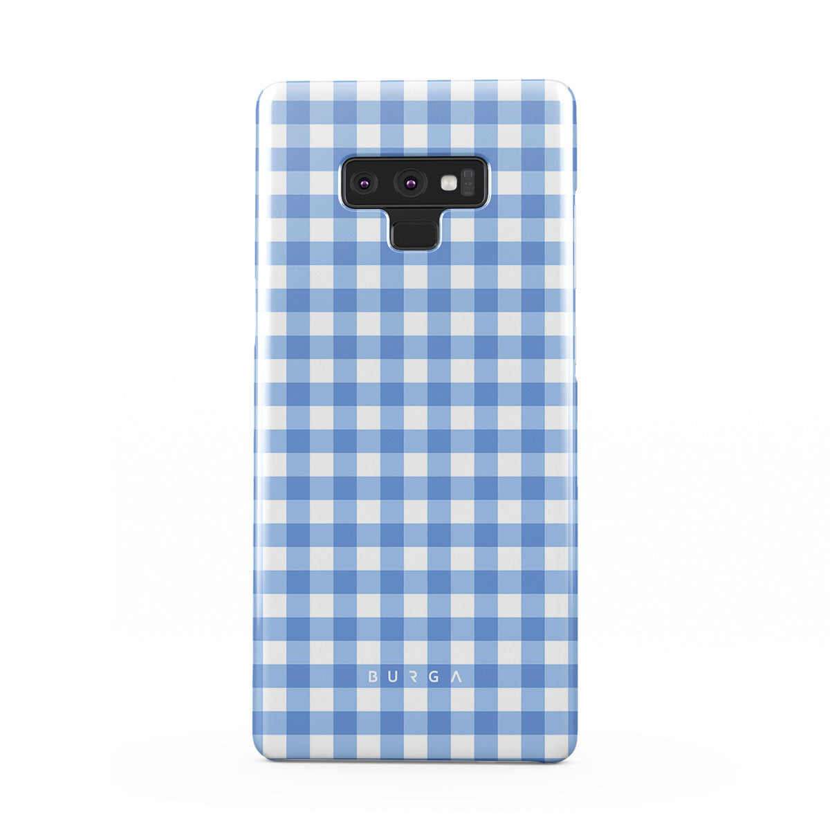 Crisp blue checks are your invitation to lay on the grass, look up at the sky, and find shapes in the clouds—simple joys that make any day lovely. That’s our Lovely Day Samsung Galaxy Note 9 phone case design.