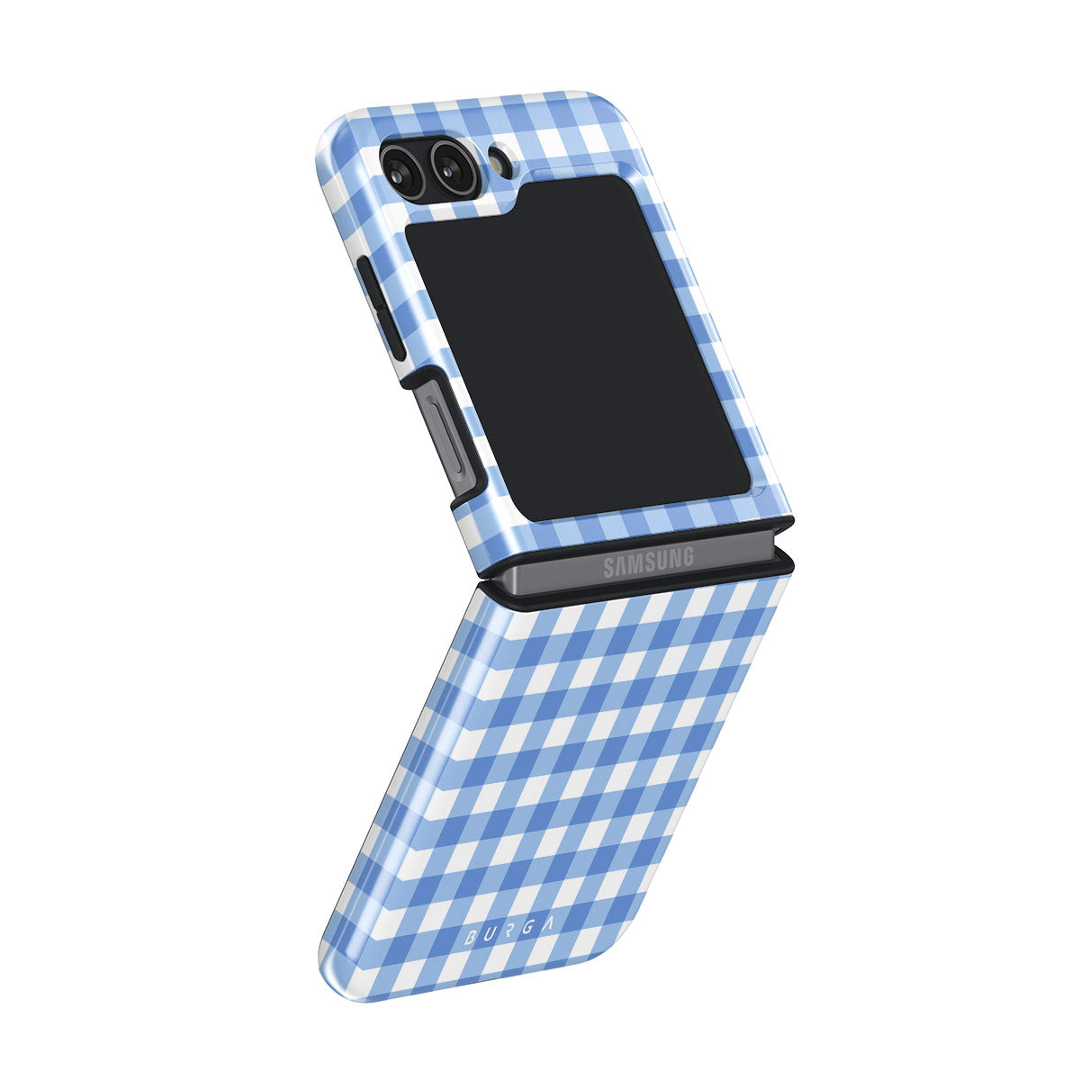 Crisp blue checks are your invitation to lay on the grass, look up at the sky, and find shapes in the clouds—simple joys that make any day lovely. That’s our Lovely Day Samsung Galaxy Z Flip 5 phone case design.