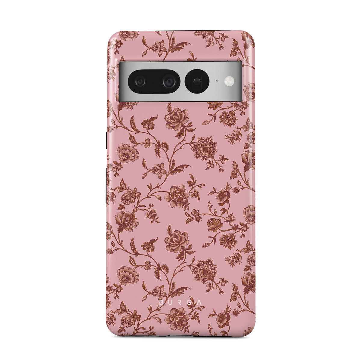 The Lover Google Pixel 7 Pro phone case design: because you're a Lover, not a fighter. Delicate floral motifs across a soft pink background capture the essence of timeless beauty and rustic elegance. Perfect for modern-day cowgirls with a vintage heart.