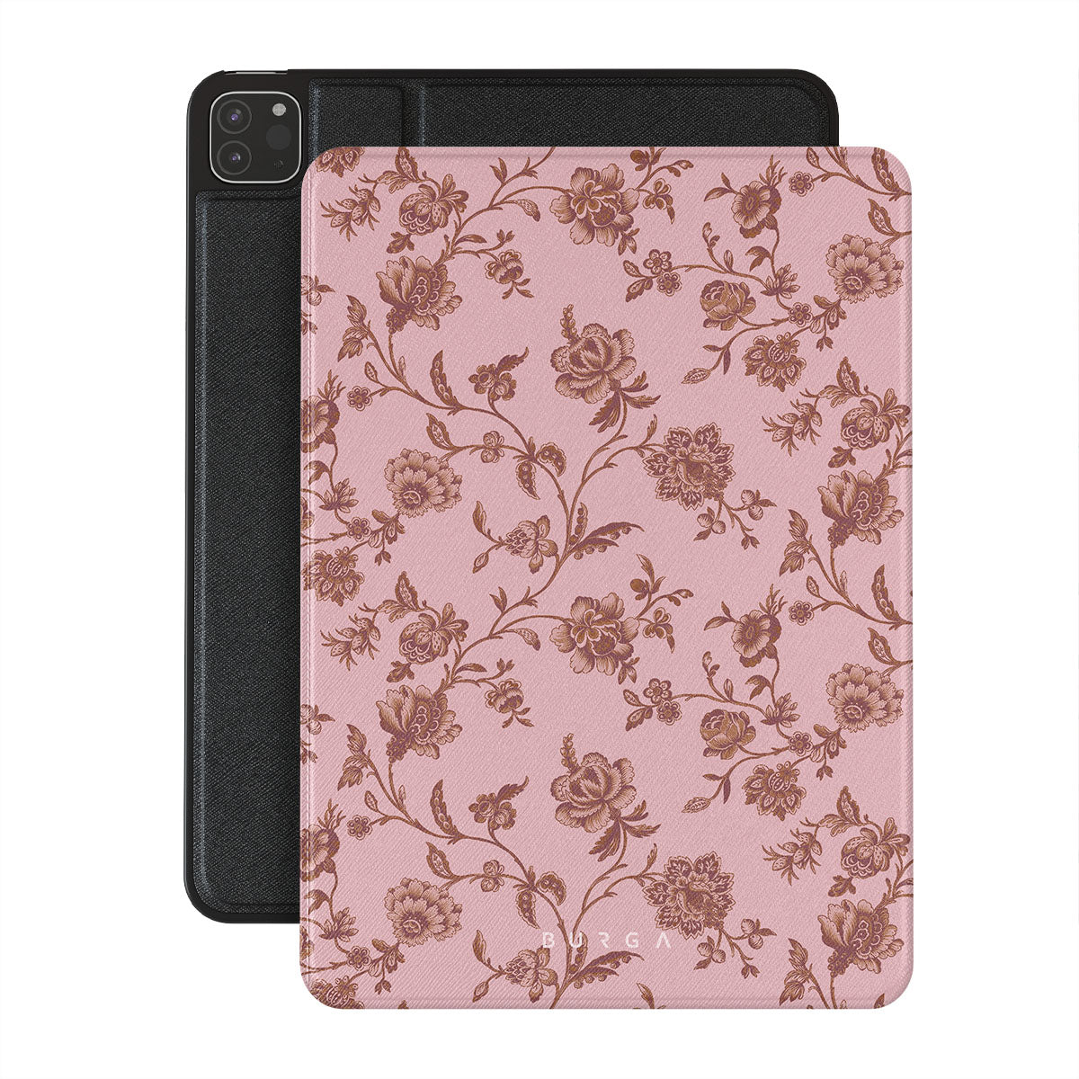 The Lover iPad Pro 12.9 (4th/3rd Gen) folio case design: because you're a Lover, not a fighter. Delicate floral motifs across a soft pink background capture the essence of timeless beauty and rustic elegance. Perfect for modern-day cowgirls with a vintage heart.