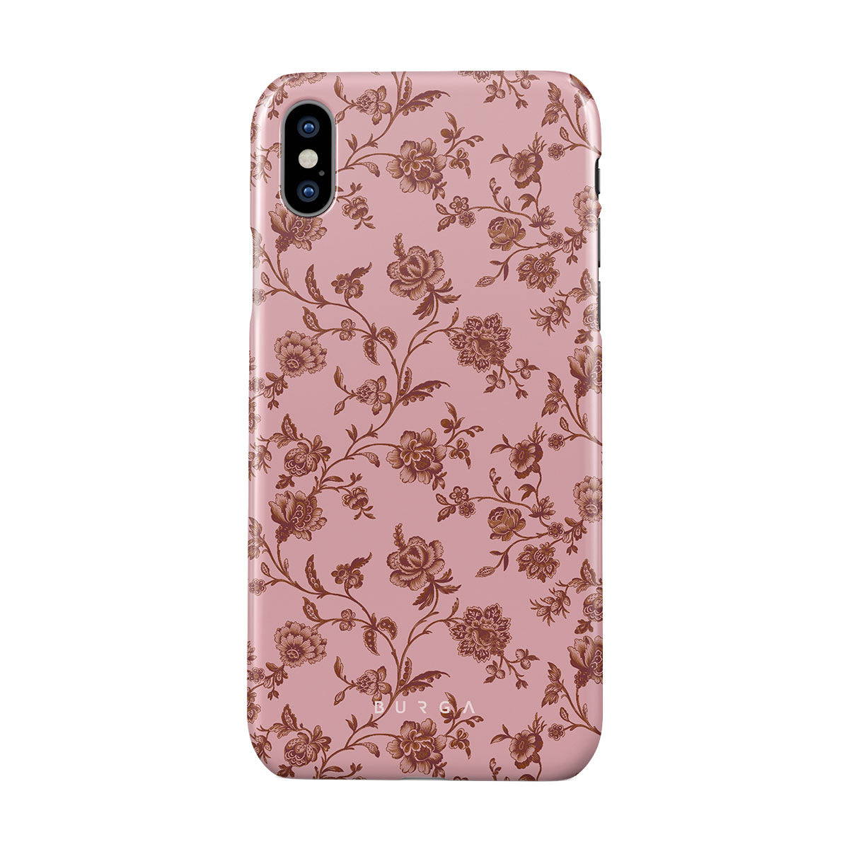 The Lover iPhone X / XS phone case design: because you're a Lover, not a fighter. Delicate floral motifs across a soft pink background capture the essence of timeless beauty and rustic elegance. Perfect for modern-day cowgirls with a vintage heart.