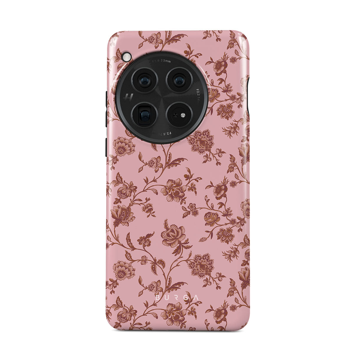 The Lover OnePlus 12 phone case design: because you're a Lover, not a fighter. Delicate floral motifs across a soft pink background capture the essence of timeless beauty and rustic elegance. Perfect for modern-day cowgirls with a vintage heart.