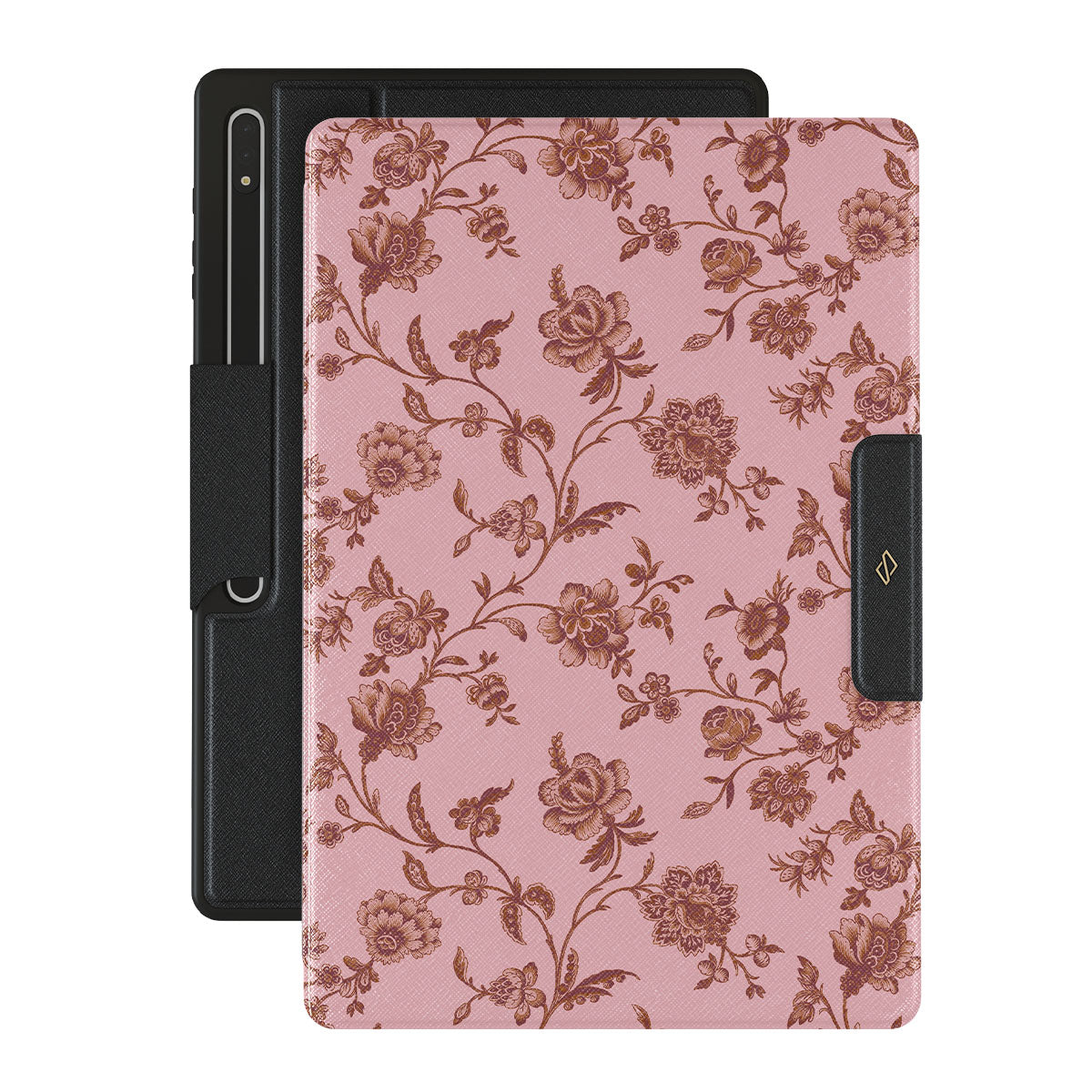 The Lover Samsung Galaxy Tab S8 Ultra folio case design: because you're a Lover, not a fighter. Delicate floral motifs across a soft pink background capture the essence of timeless beauty and rustic elegance. Perfect for modern-day cowgirls with a vintage heart.