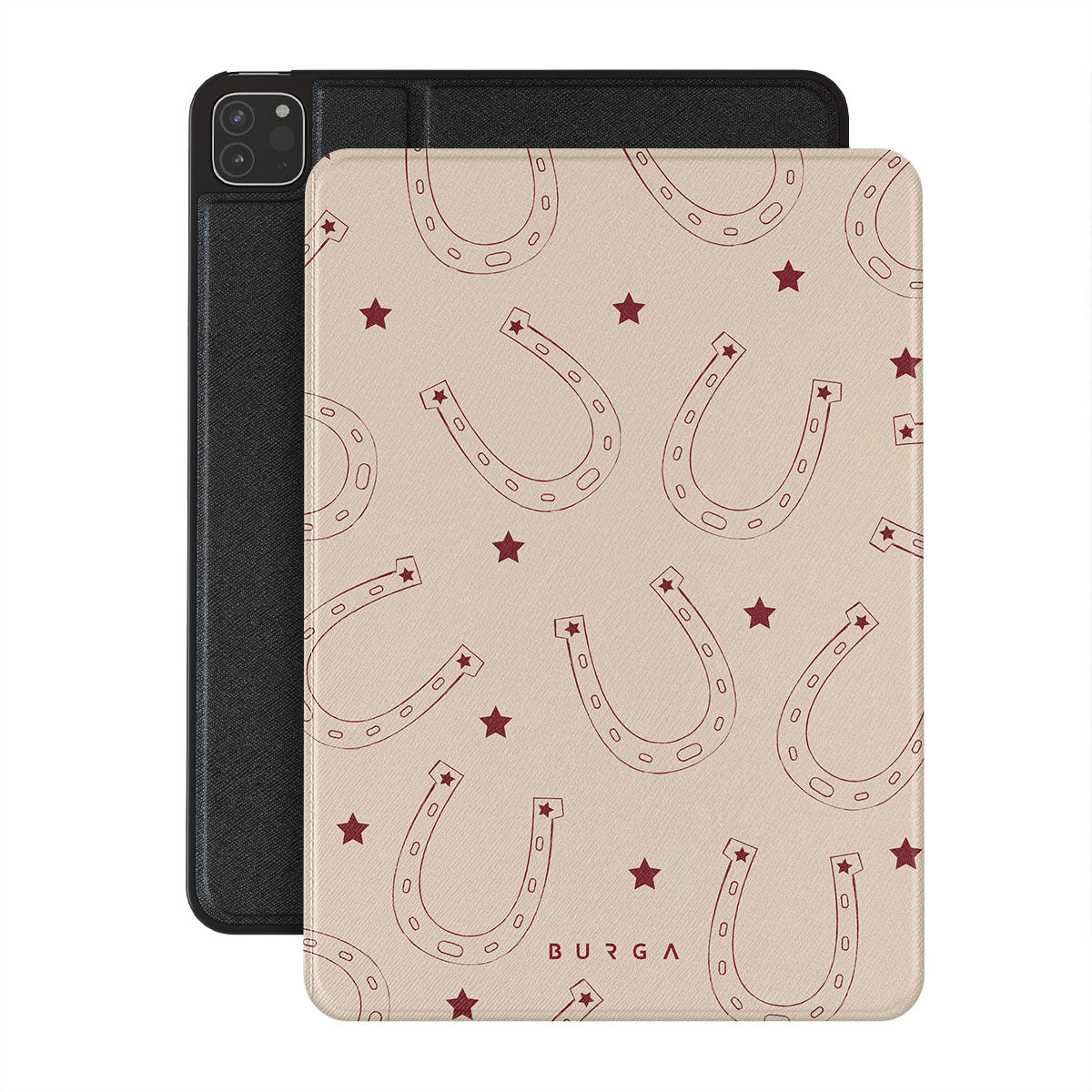 Horseshoes for luck, stars for style. Keep fortune on your side with our Lucky Charm iPad Pro 12.9 (4th/3rd Gen) folio case . This design is a playful take on traditional symbols of luck. The earthy tones make it a versatile accessory for any western-inspired outfit—and not only.