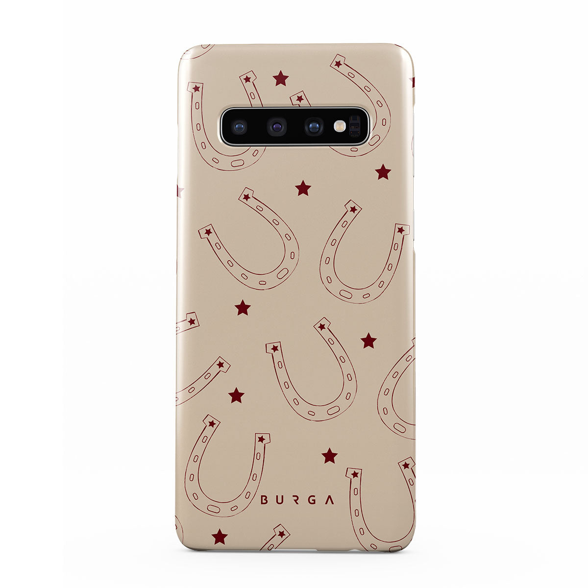 Horseshoes for luck, stars for style. Keep fortune on your side with our Lucky Charm Samsung Galaxy S10 Plus phone case. This design is a playful take on traditional symbols of luck. The earthy tones make it a versatile accessory for any western-inspired outfit—and not only.