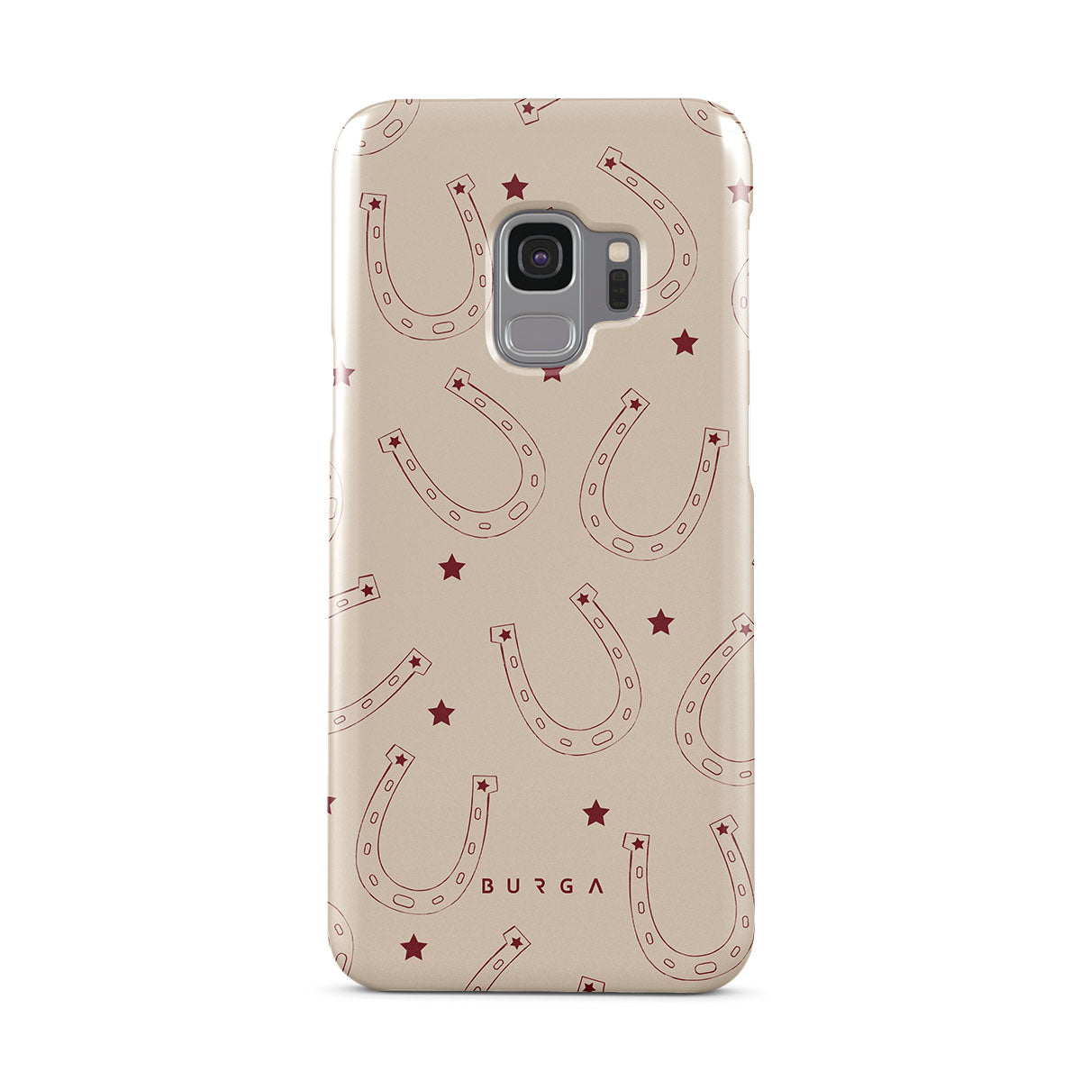 Horseshoes for luck, stars for style. Keep fortune on your side with our Lucky Charm Samsung Galaxy S9 phone case. This design is a playful take on traditional symbols of luck. The earthy tones make it a versatile accessory for any western-inspired outfit—and not only.