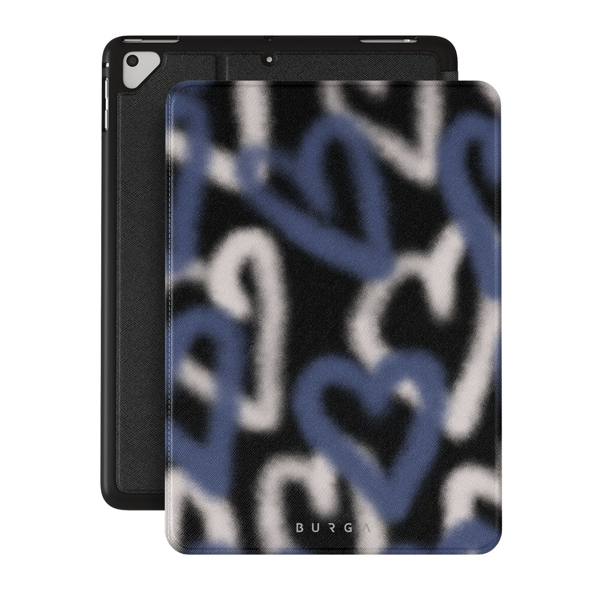 The Lucky You iPad 9.7 (6th/5th Gen) folio case captures the raw, unfiltered pulse of street art. Graffiti hearts in striking blue and white stand out against a black background, their edges softly faded. It’s a design that speaks to the restless who find beauty in chaos and dare to be different.