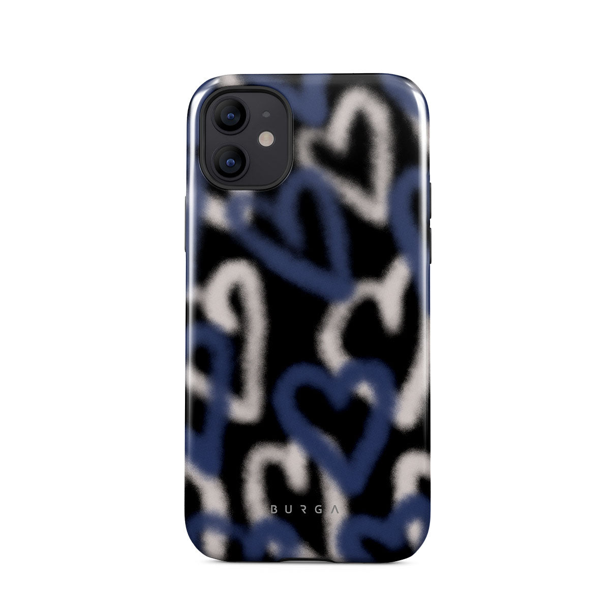 The Lucky You iPhone 12 phone case captures the raw, unfiltered pulse of street art. Graffiti hearts in striking blue and white stand out against a black background, their edges softly faded. It’s a design that speaks to the restless who find beauty in chaos and dare to be different.
