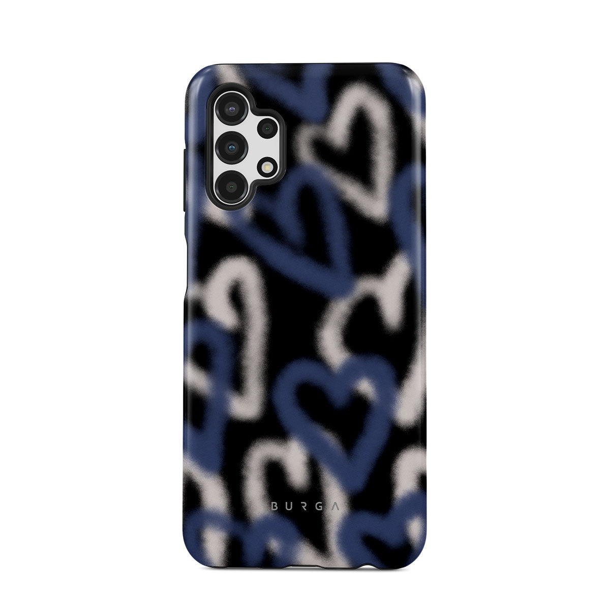 The Lucky You Samsung Galaxy A13 4G phone case captures the raw, unfiltered pulse of street art. Graffiti hearts in striking blue and white stand out against a black background, their edges softly faded. It’s a design that speaks to the restless who find beauty in chaos and dare to be different.