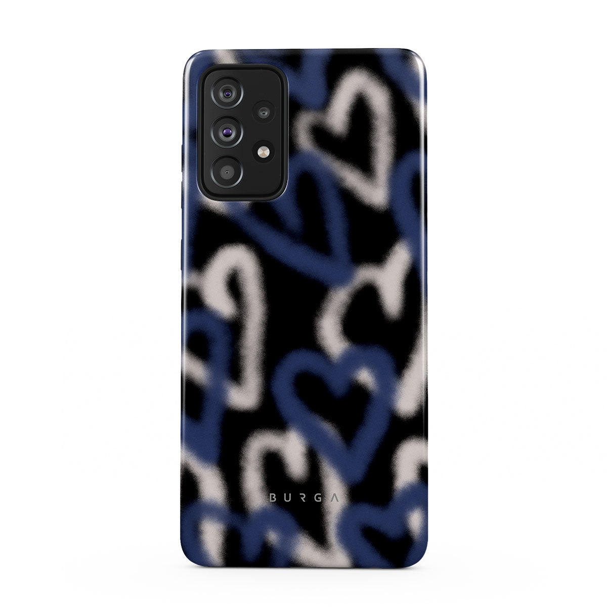 The Lucky You Samsung Galaxy A52 / A52S 4G / 5G phone case captures the raw, unfiltered pulse of street art. Graffiti hearts in striking blue and white stand out against a black background, their edges softly faded. It’s a design that speaks to the restless who find beauty in chaos and dare to be different.