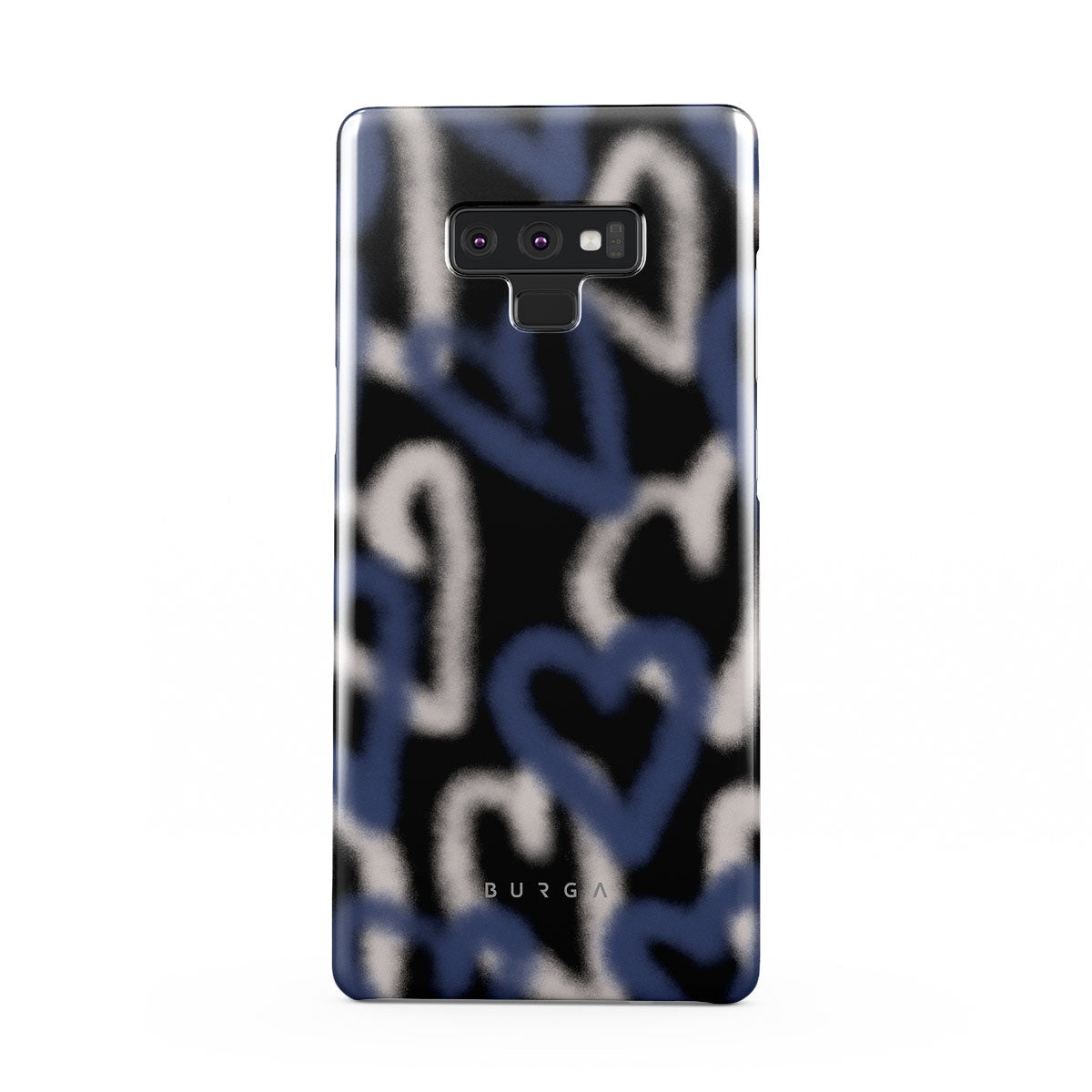 The Lucky You Samsung Galaxy Note 9 phone case captures the raw, unfiltered pulse of street art. Graffiti hearts in striking blue and white stand out against a black background, their edges softly faded. It’s a design that speaks to the restless who find beauty in chaos and dare to be different.