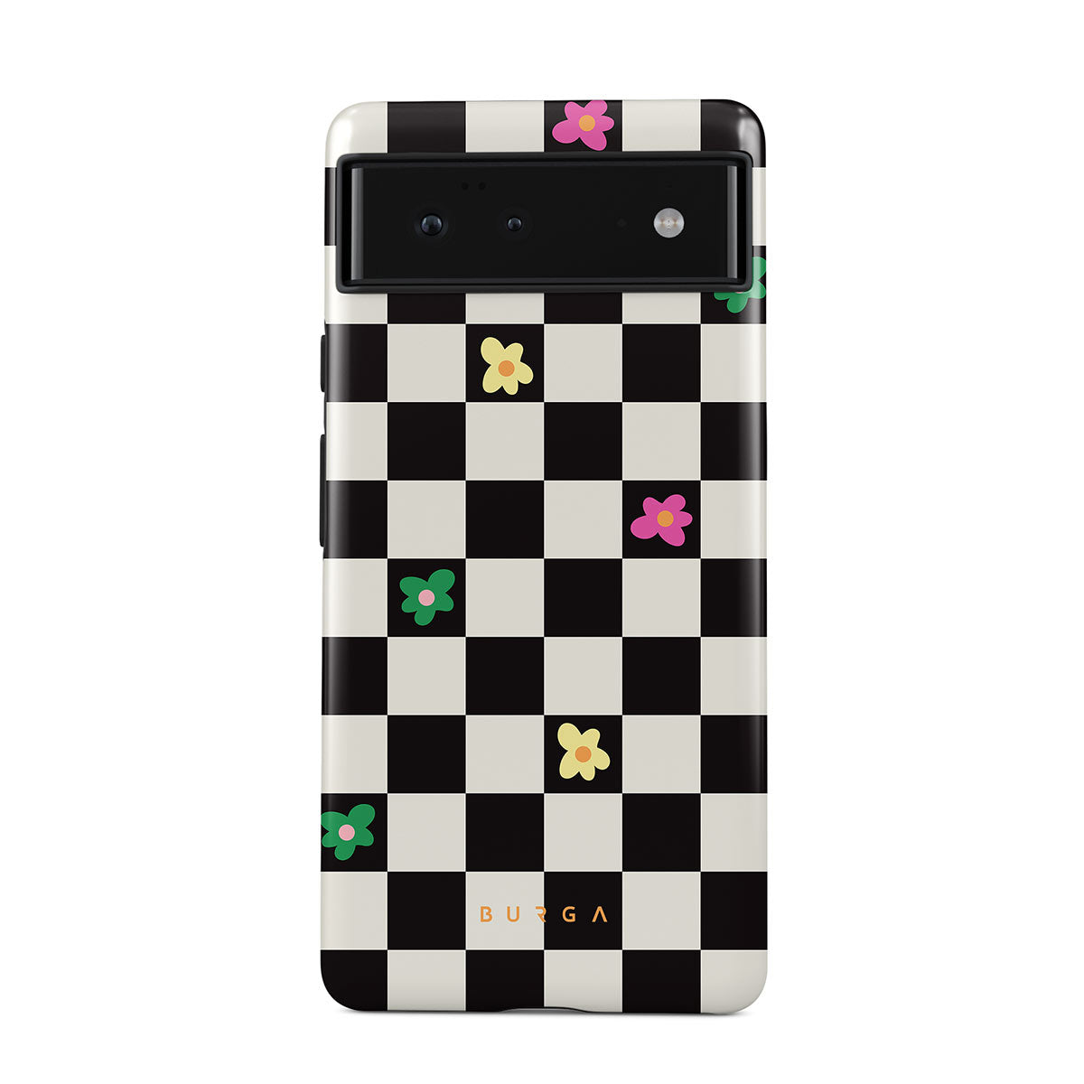 Take time to relax with our Lunch Break - Google Pixel 6a phone case. The playful addition of colorful retro flowers to the classical black and white checkered pattern will add that extra pop of color. It will bring that much-needed *oomph* to your phone. With this playful design, you can keep your phone cute and protected!