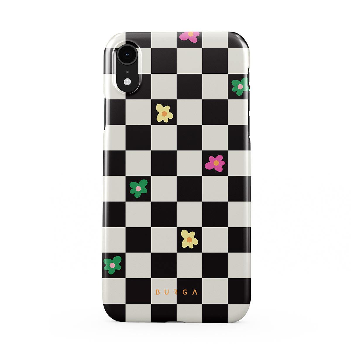 Take time to relax with our Lunch Break - iPhone XR phone case. The playful addition of colorful retro flowers to the classical black and white checkered pattern will add that extra pop of color. It will bring that much-needed *oomph* to your phone. With this playful design, you can keep your phone cute and protected!