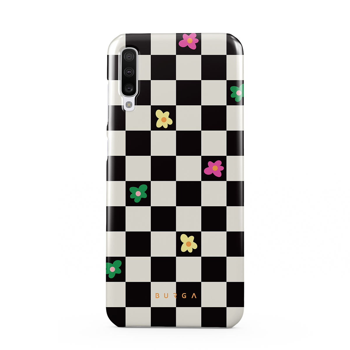 Take time to relax with our Lunch Break - Samsung Galaxy A70 phone case. The playful addition of colorful retro flowers to the classical black and white checkered pattern will add that extra pop of color. It will bring that much-needed *oomph* to your phone. With this playful design, you can keep your phone cute and protected!