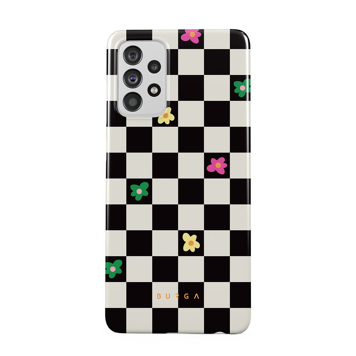 Take time to relax with our Lunch Break - Samsung Galaxy A72 4G / 5G phone case. The playful addition of colorful retro flowers to the classical black and white checkered pattern will add that extra pop of color. It will bring that much-needed *oomph* to your phone. With this playful design, you can keep your phone cute and protected!