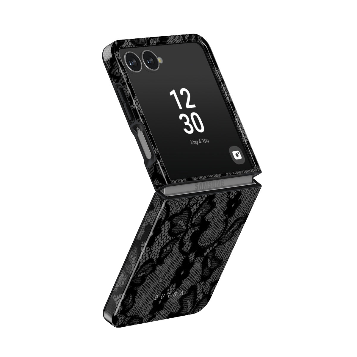 Inspired by the intricate patterns of lace gowns, our Magnetic design is perfect for those with a love for the drama and romance of old Hollywood. This Samsung Galaxy Z Flip 7 phone case is a statement of effortless, mysterious femininity, turning you into the main character where you go.