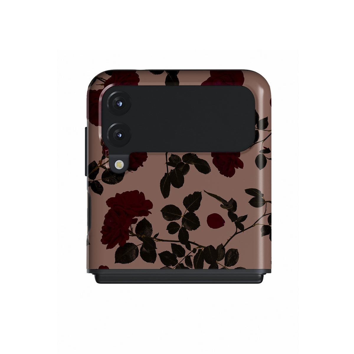 Live out loud as the Main Character with this elegantly bold design that promises a new daily adventure. With deep, rich roses against a pink background, this Samsung Galaxy Z Flip 3 phone case design is crafted for the muse in you.