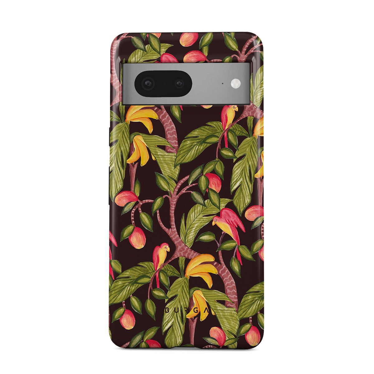 A lush botanical fantasy where ripe mangoes hang like forbidden fruit. Deep greens and juicy oranges pull you into a tropical escape. If this Google Pixel 7a phone case design had a voice, it would purr.