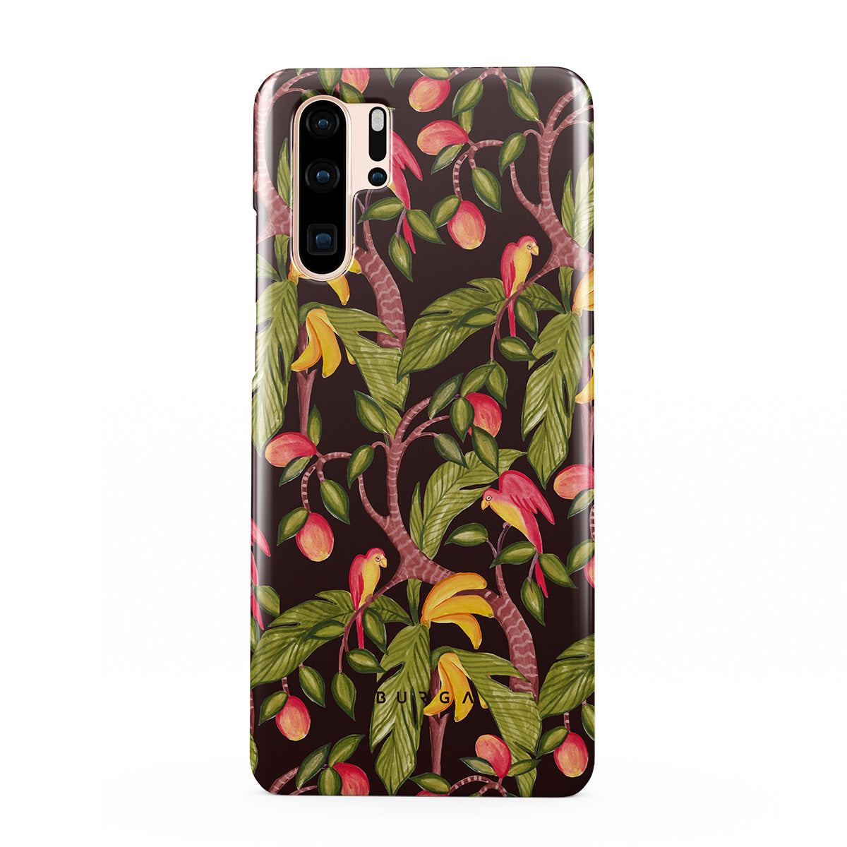 A lush botanical fantasy where ripe mangoes hang like forbidden fruit. Deep greens and juicy oranges pull you into a tropical escape. If this Huawei P30 Pro phone case design had a voice, it would purr.