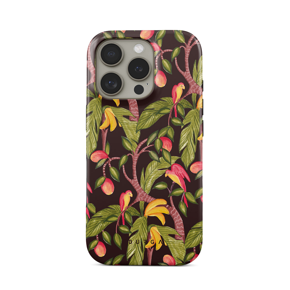 A lush botanical fantasy where ripe mangoes hang like forbidden fruit. Deep greens and juicy oranges pull you into a tropical escape. If this iPhone 16 Pro phone case design had a voice, it would purr.
