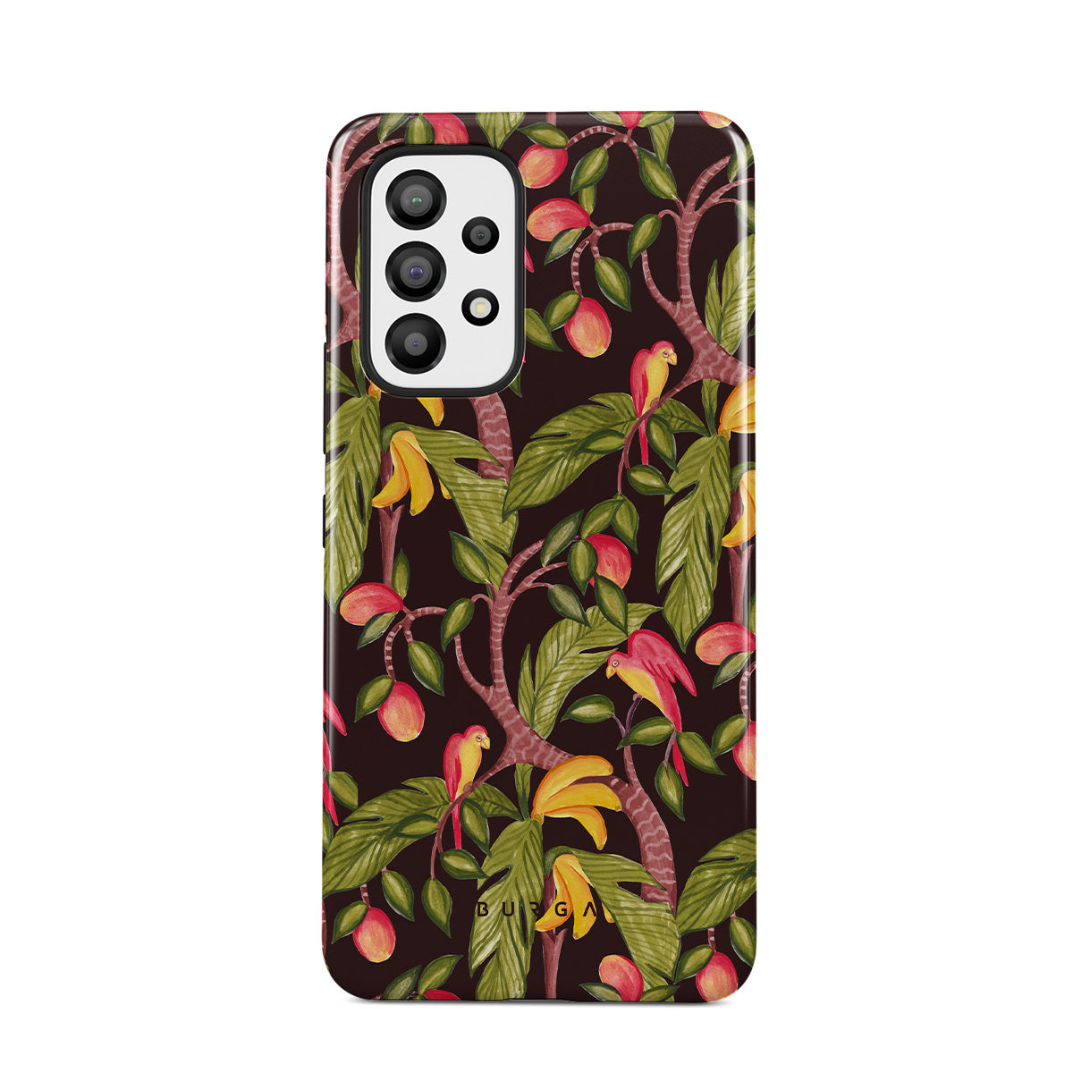 A lush botanical fantasy where ripe mangoes hang like forbidden fruit. Deep greens and juicy oranges pull you into a tropical escape. If this Samsung Galaxy A23 4G / 5G phone case design had a voice, it would purr.