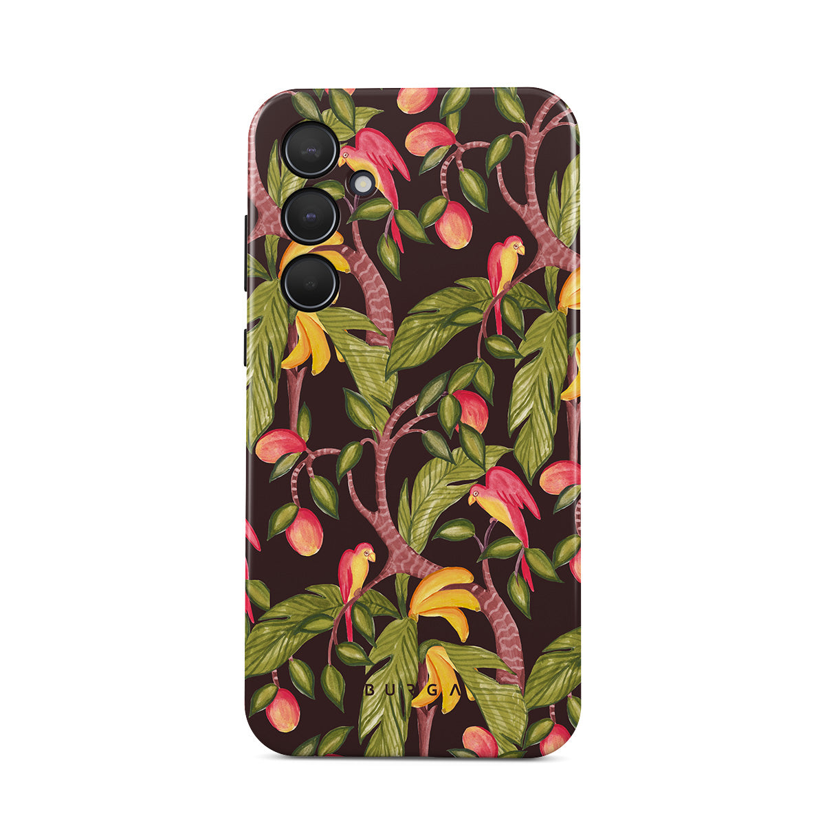 A lush botanical fantasy where ripe mangoes hang like forbidden fruit. Deep greens and juicy oranges pull you into a tropical escape. If this Samsung Galaxy A35 phone case design had a voice, it would purr.
