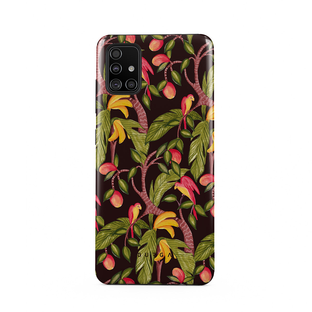 A lush botanical fantasy where ripe mangoes hang like forbidden fruit. Deep greens and juicy oranges pull you into a tropical escape. If this Samsung Galaxy A51 4G phone case design had a voice, it would purr.
