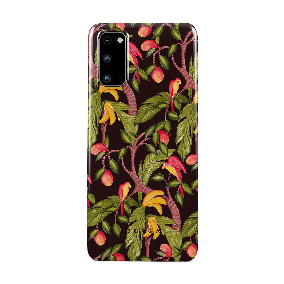 A lush botanical fantasy where ripe mangoes hang like forbidden fruit. Deep greens and juicy oranges pull you into a tropical escape. If this Samsung Galaxy S20 4G / 5G phone case design had a voice, it would purr.