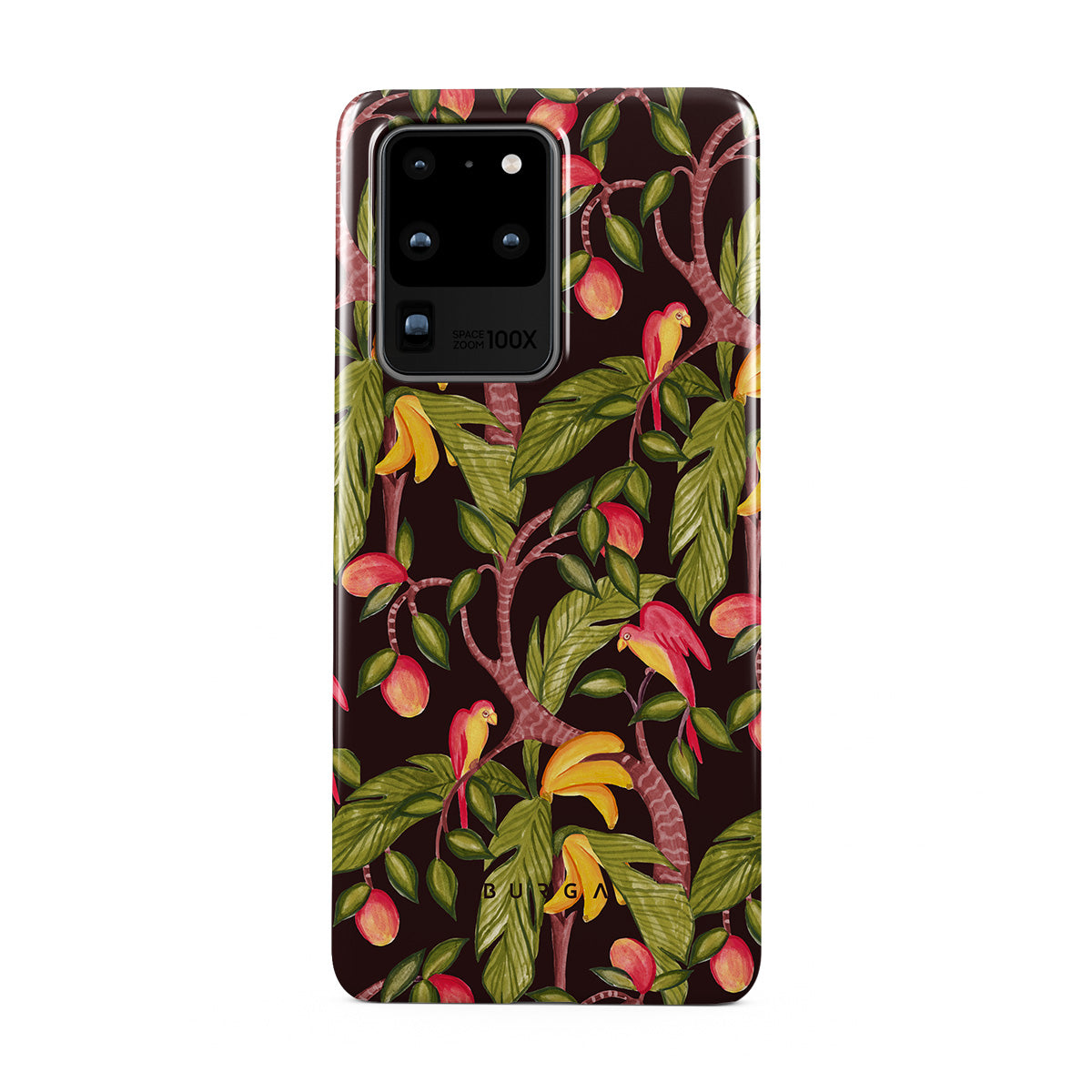 A lush botanical fantasy where ripe mangoes hang like forbidden fruit. Deep greens and juicy oranges pull you into a tropical escape. If this Samsung Galaxy S20 Ultra 4G / 5G phone case design had a voice, it would purr.