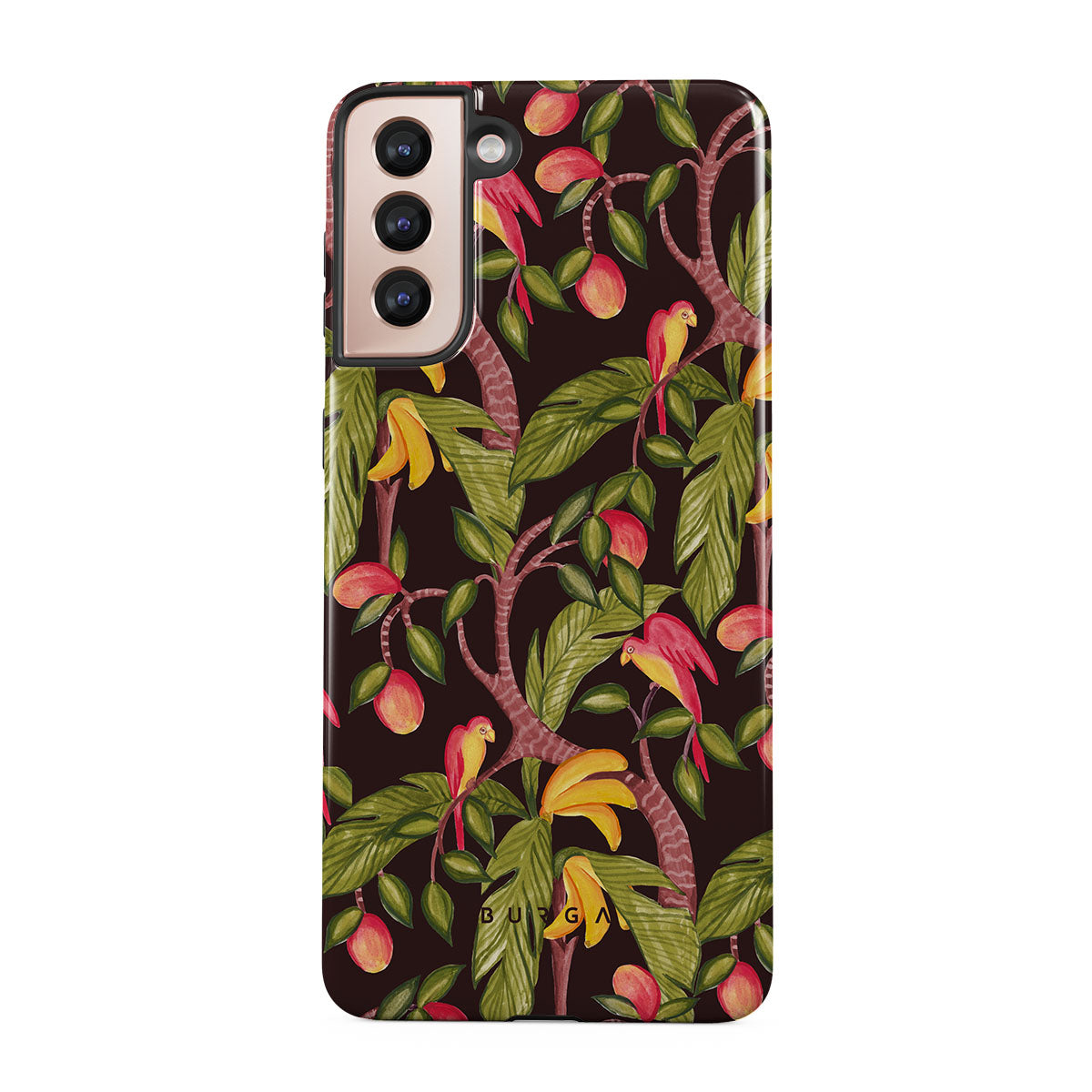 A lush botanical fantasy where ripe mangoes hang like forbidden fruit. Deep greens and juicy oranges pull you into a tropical escape. If this Samsung Galaxy S21 Plus phone case design had a voice, it would purr.