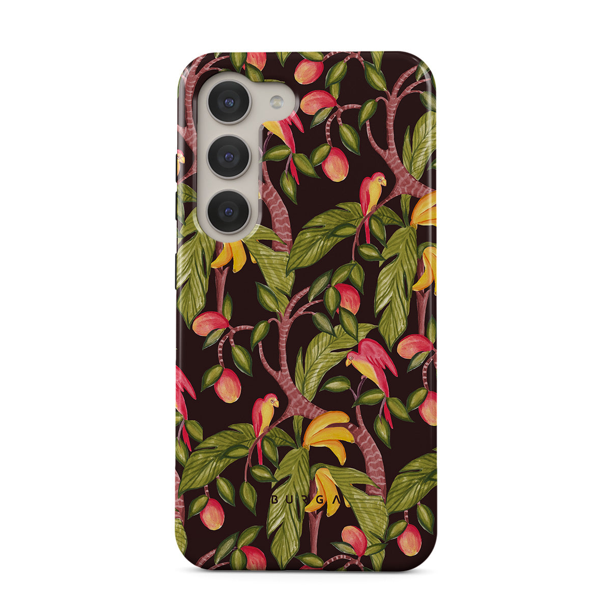 A lush botanical fantasy where ripe mangoes hang like forbidden fruit. Deep greens and juicy oranges pull you into a tropical escape. If this Samsung Galaxy S23 phone case design had a voice, it would purr.